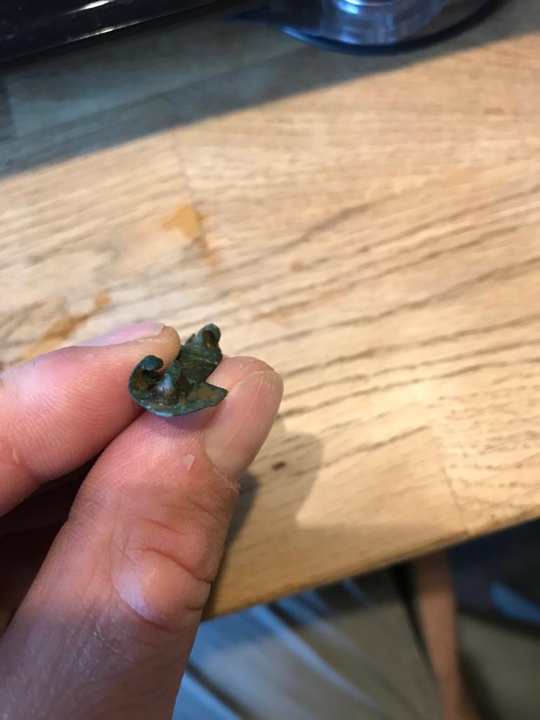 Ja .Müsste eine Fibel sein . Der kleine blechartige Nadelhalter scheint verbogen zu sein .
