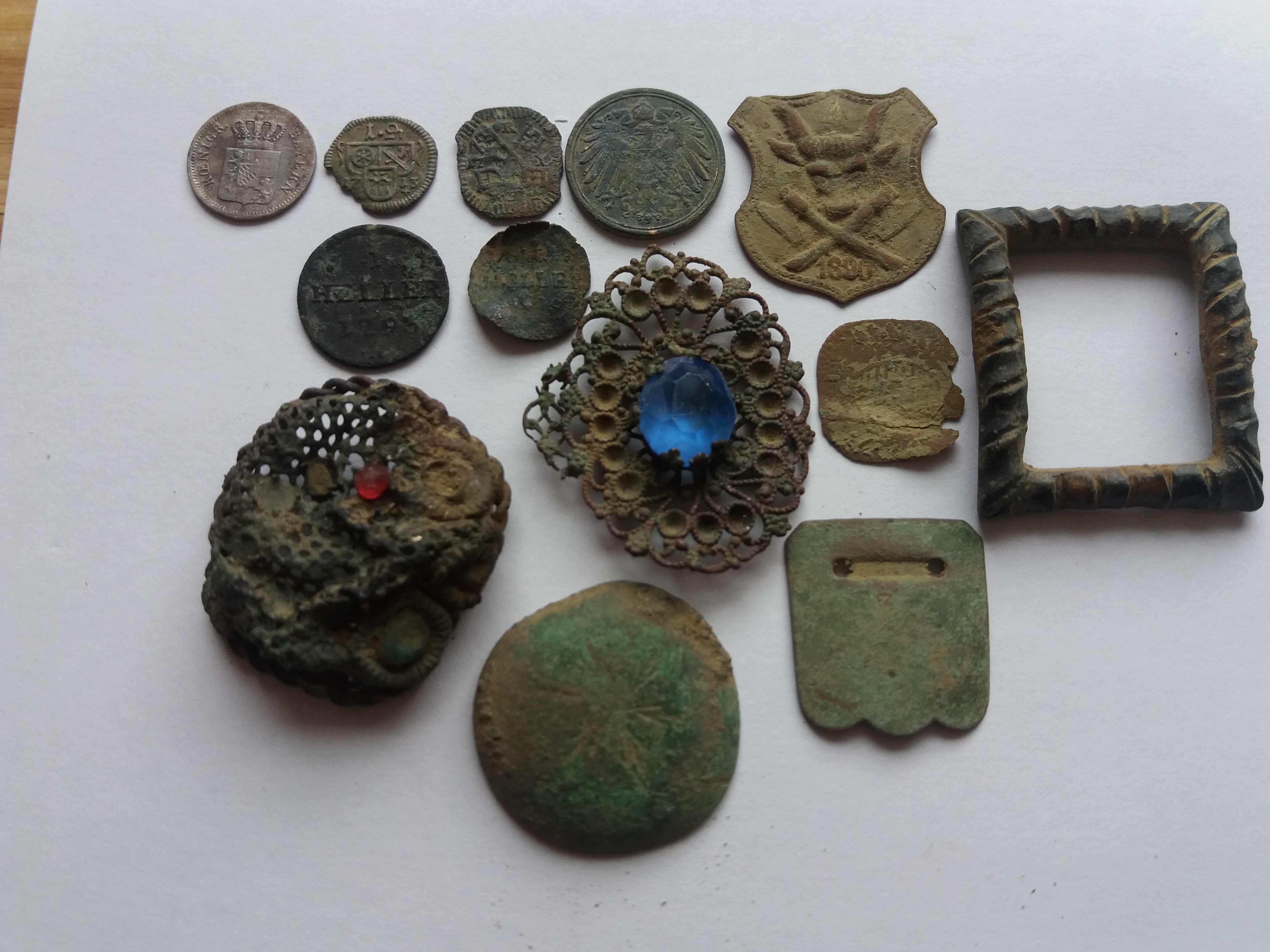 Schön und auch gut erhalten. Schmuck und sogar ein kleines Riemenplättchen von einer Pickelhaube