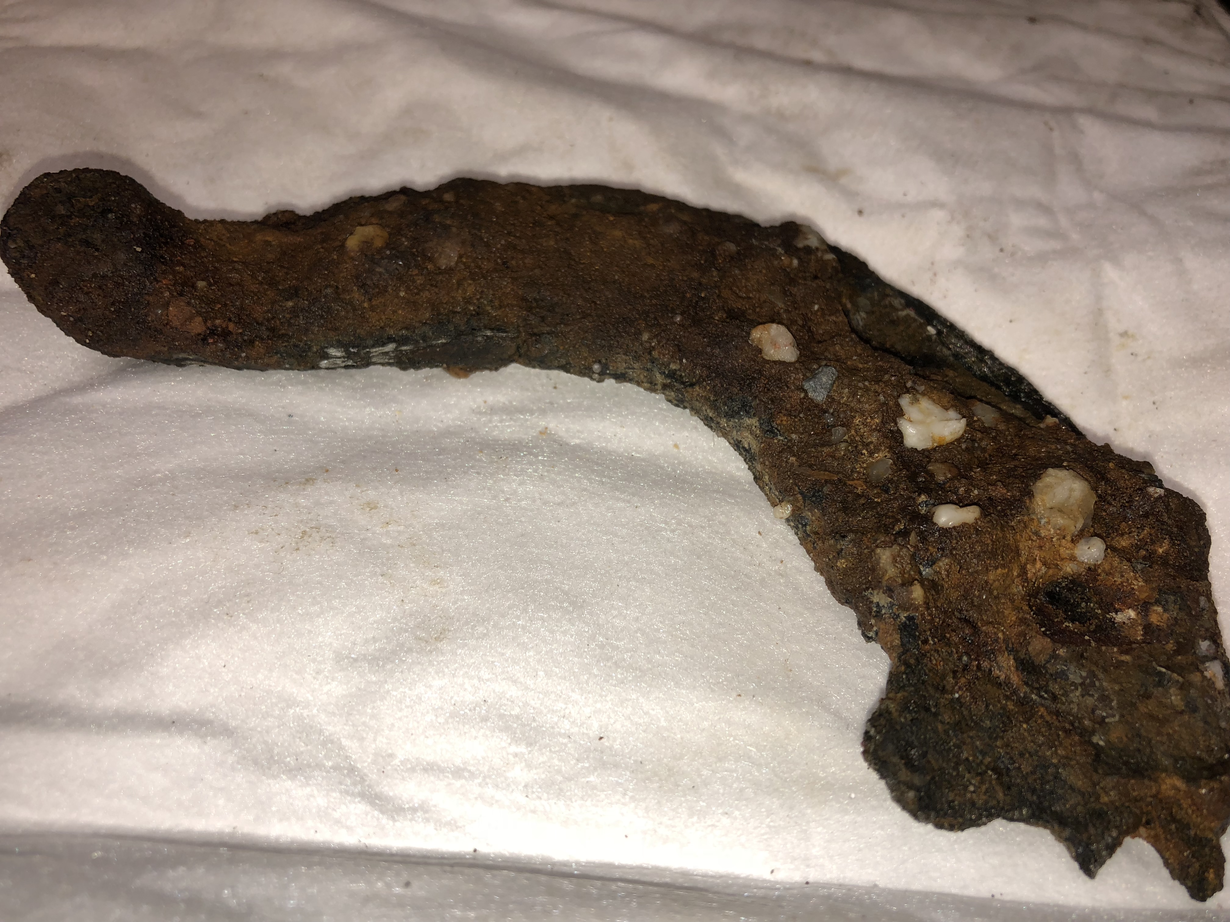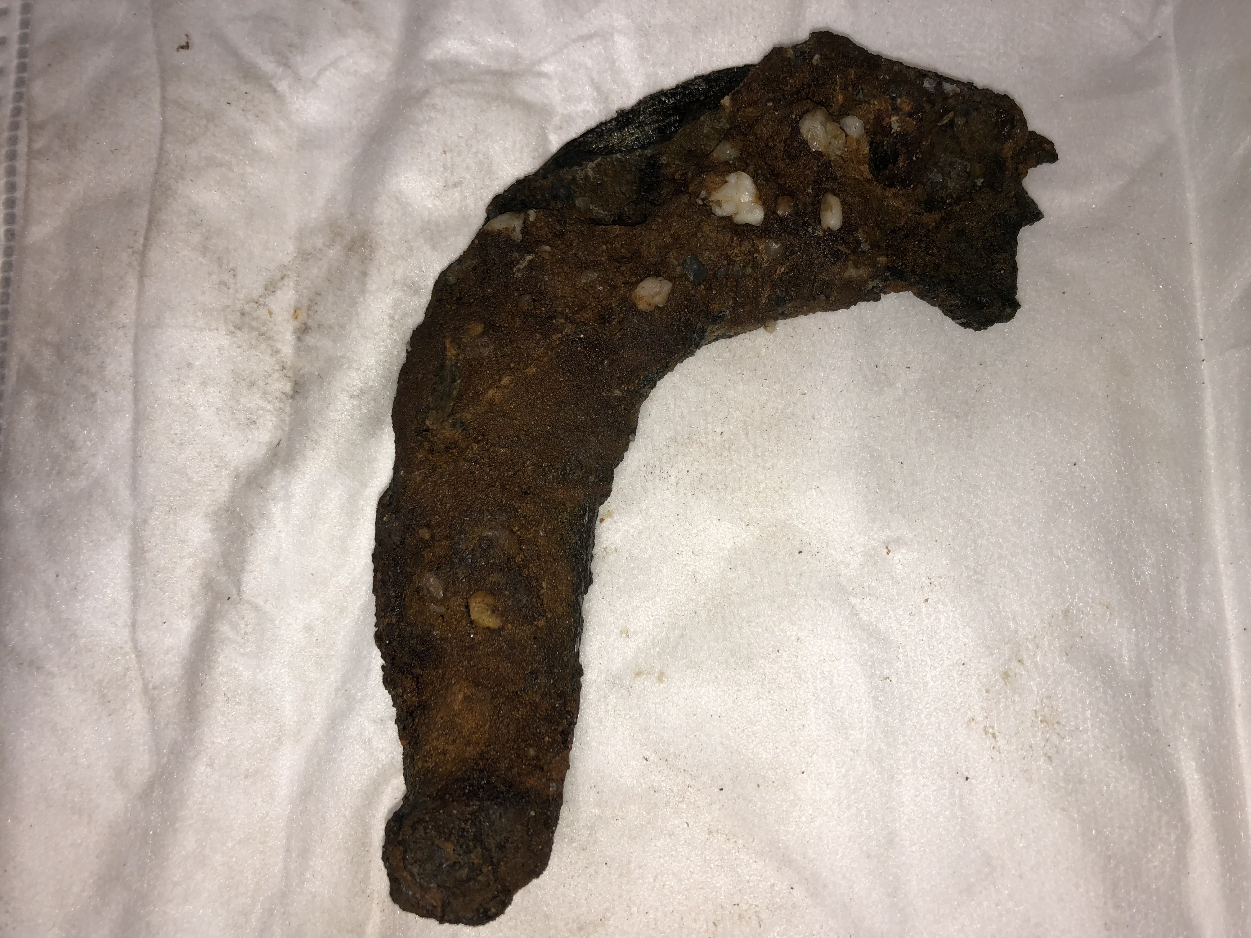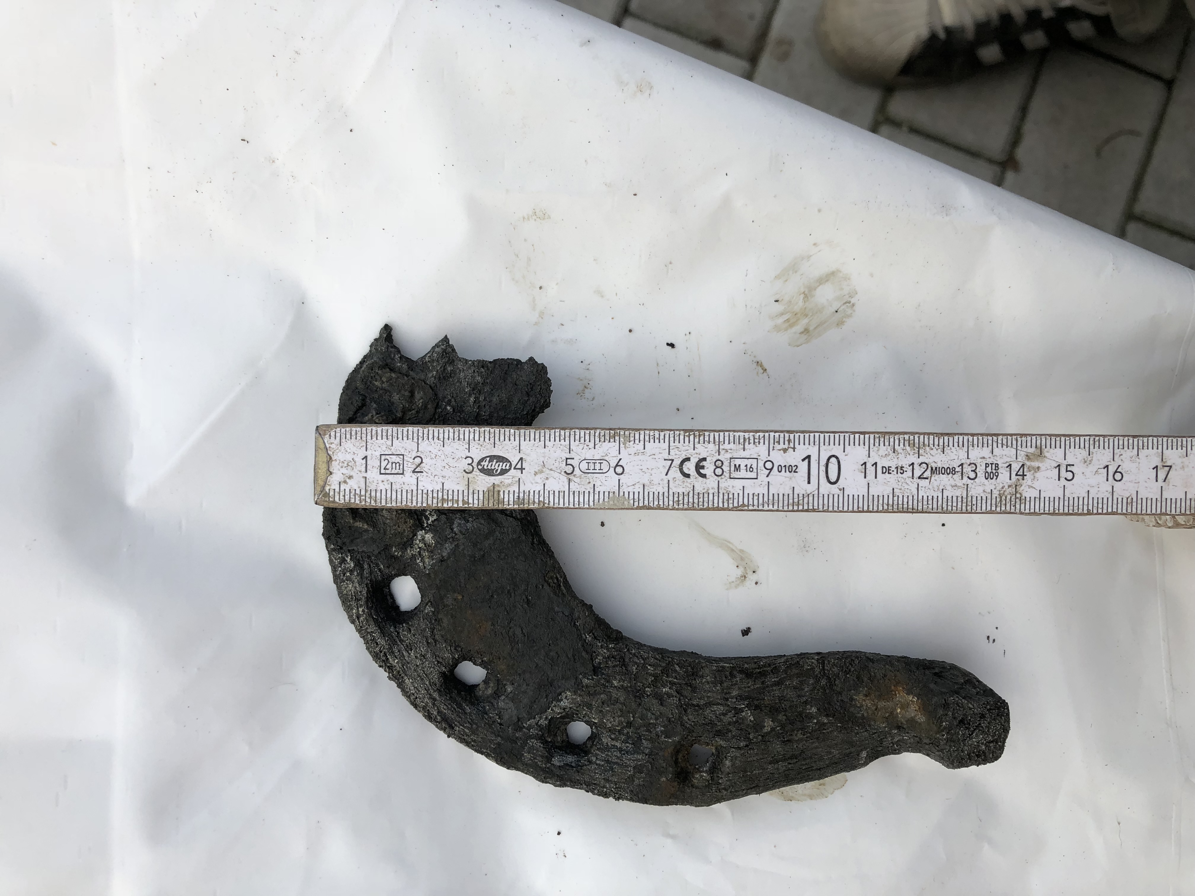 beim buddeln eines Grabens für eine Hecke, bin ich in etwa 30 cm Tiefe auf dieses vermeintliche Hufeisen gestoßen. Es ist so extrem krustig verrostet, dass es sehr alt sein muss.