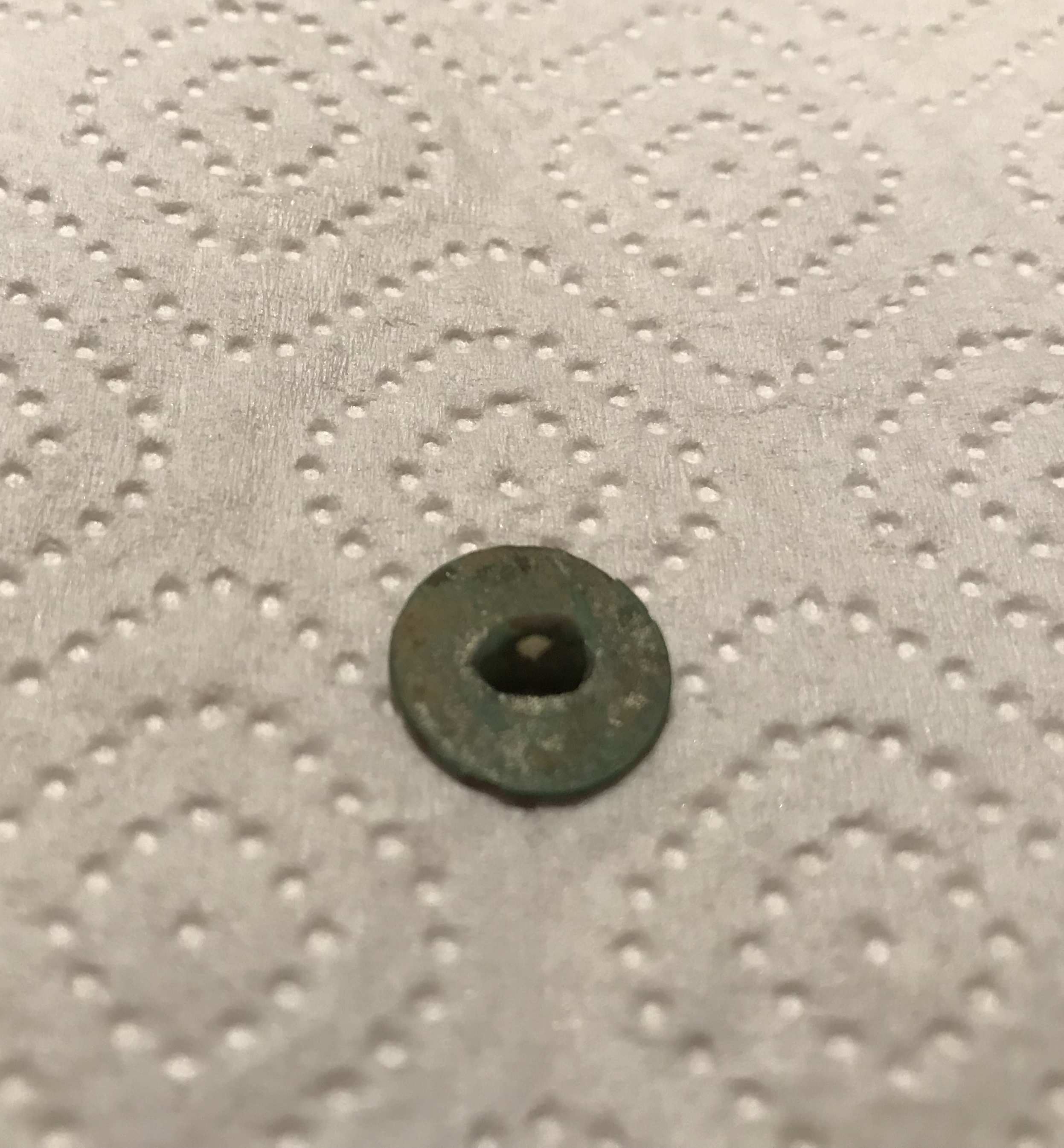 markanter Knopf + Stück Pflug / Miniaturbeil?