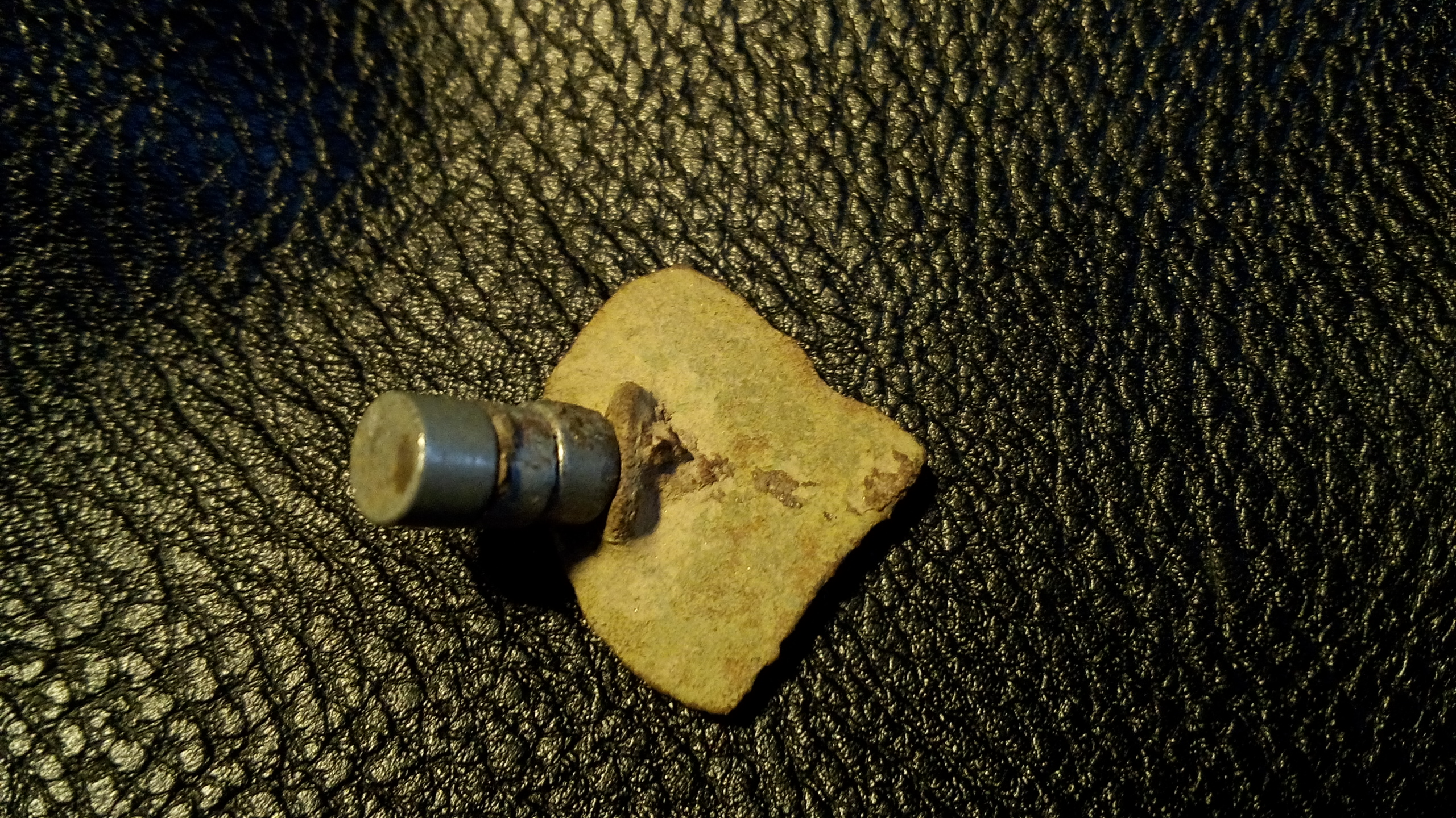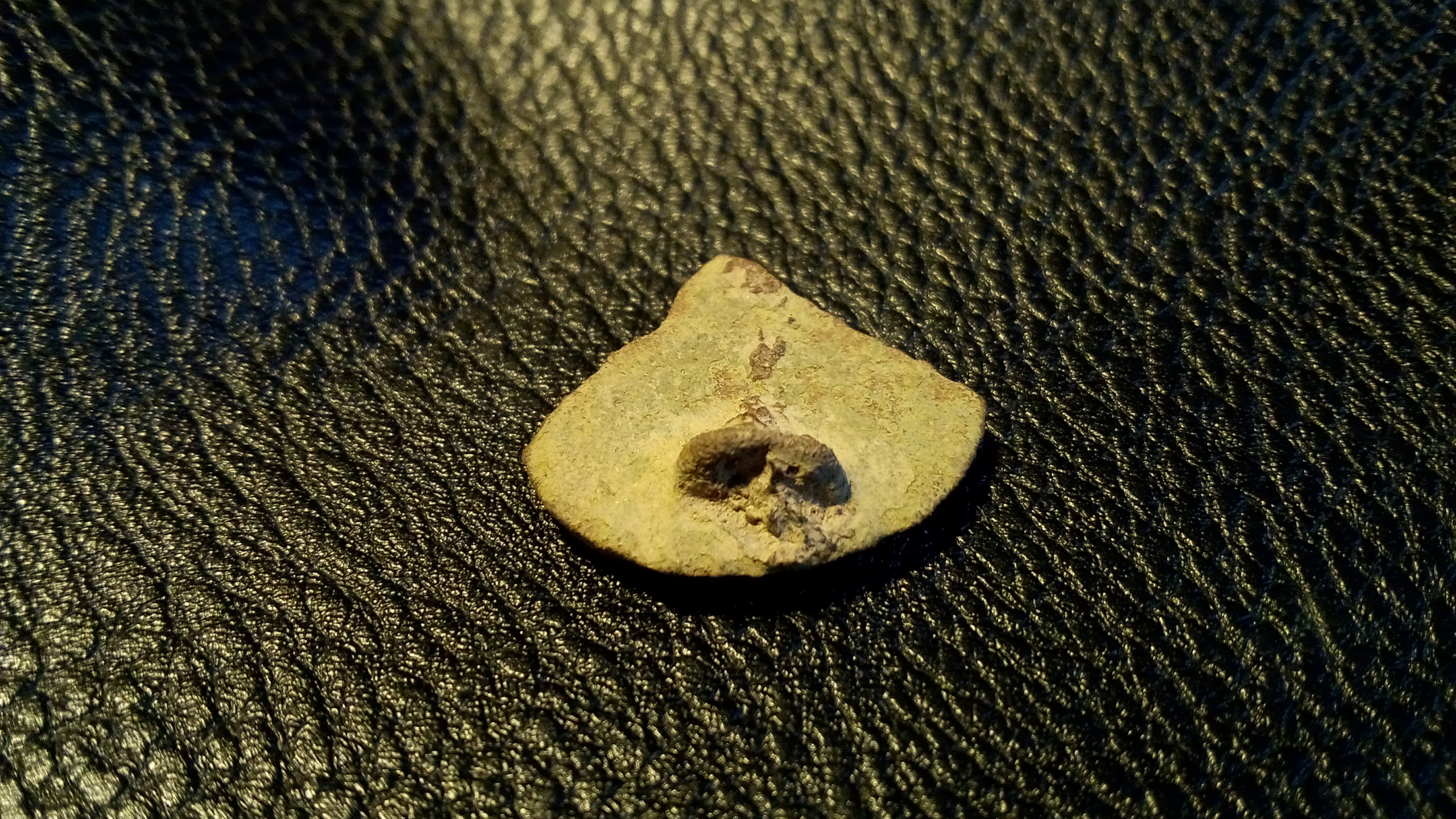 Hi war heute sondeln und hab dabei dieses Bronze Fragment auf einer Wiese gefunden, an der Öse ist noch etwas Eisen dran.