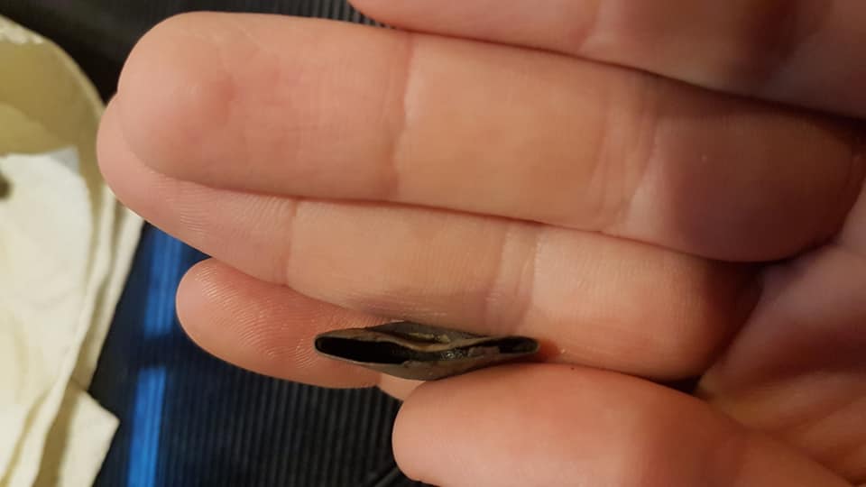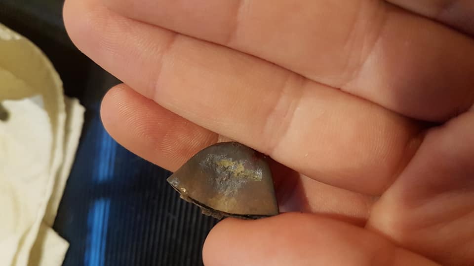 Hallo! Ich habe das Stück bereits recht lange eingeweicht und recht intensiv behandelt gehabt. In der Mitte ist bereits etwas abgesplittert, das aus meiner Sicht bereits zum Metall gehört. Ich wollte daher vor weiterem Rumgekratze lieber wissen, was ich da eigentlich freizulegen versuche - und hatte gehofft, dass hier jemand bereits aufgrund der Form etwas sagen kann.