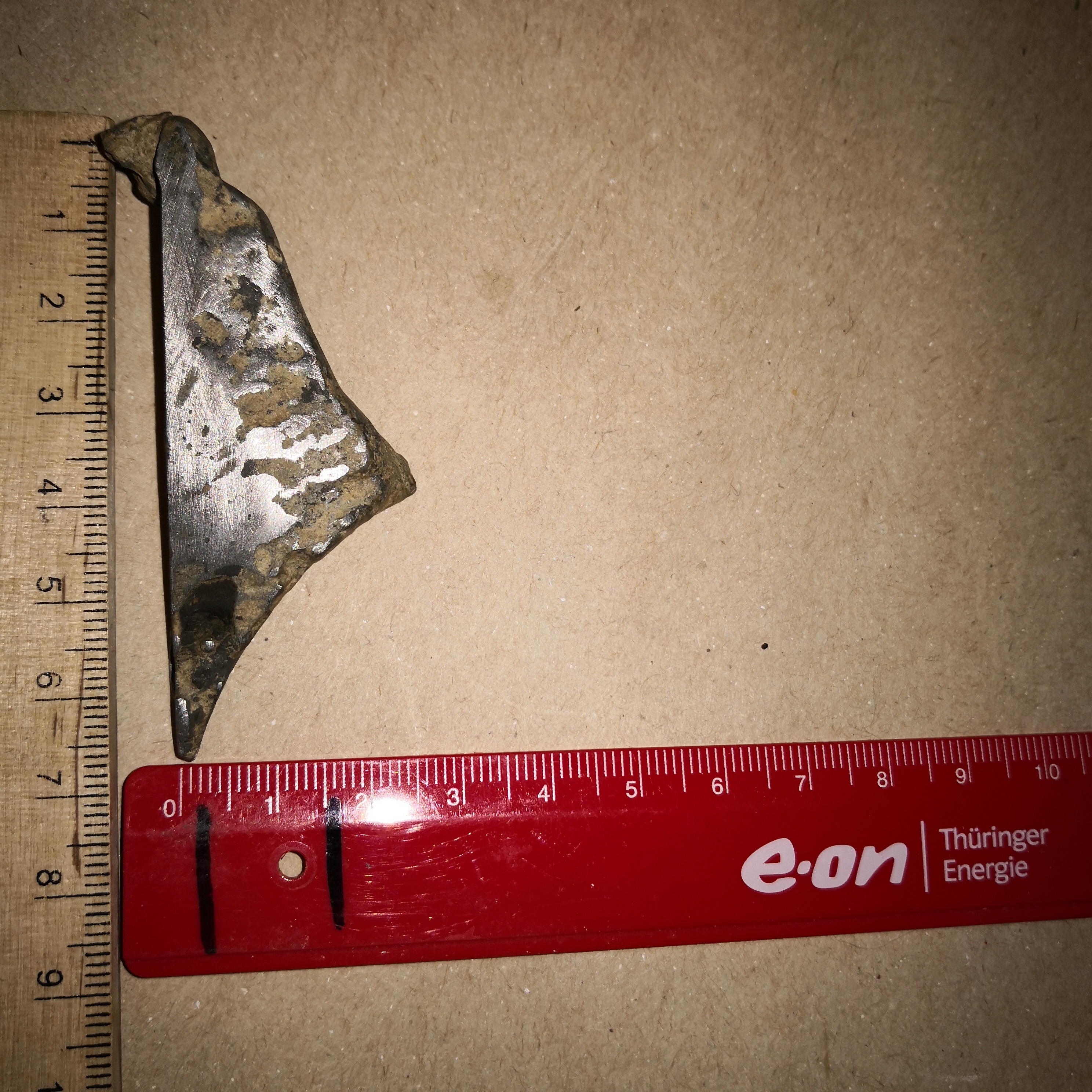 1. Silbern glänzendes dreieckiges Metallstück (Bild)