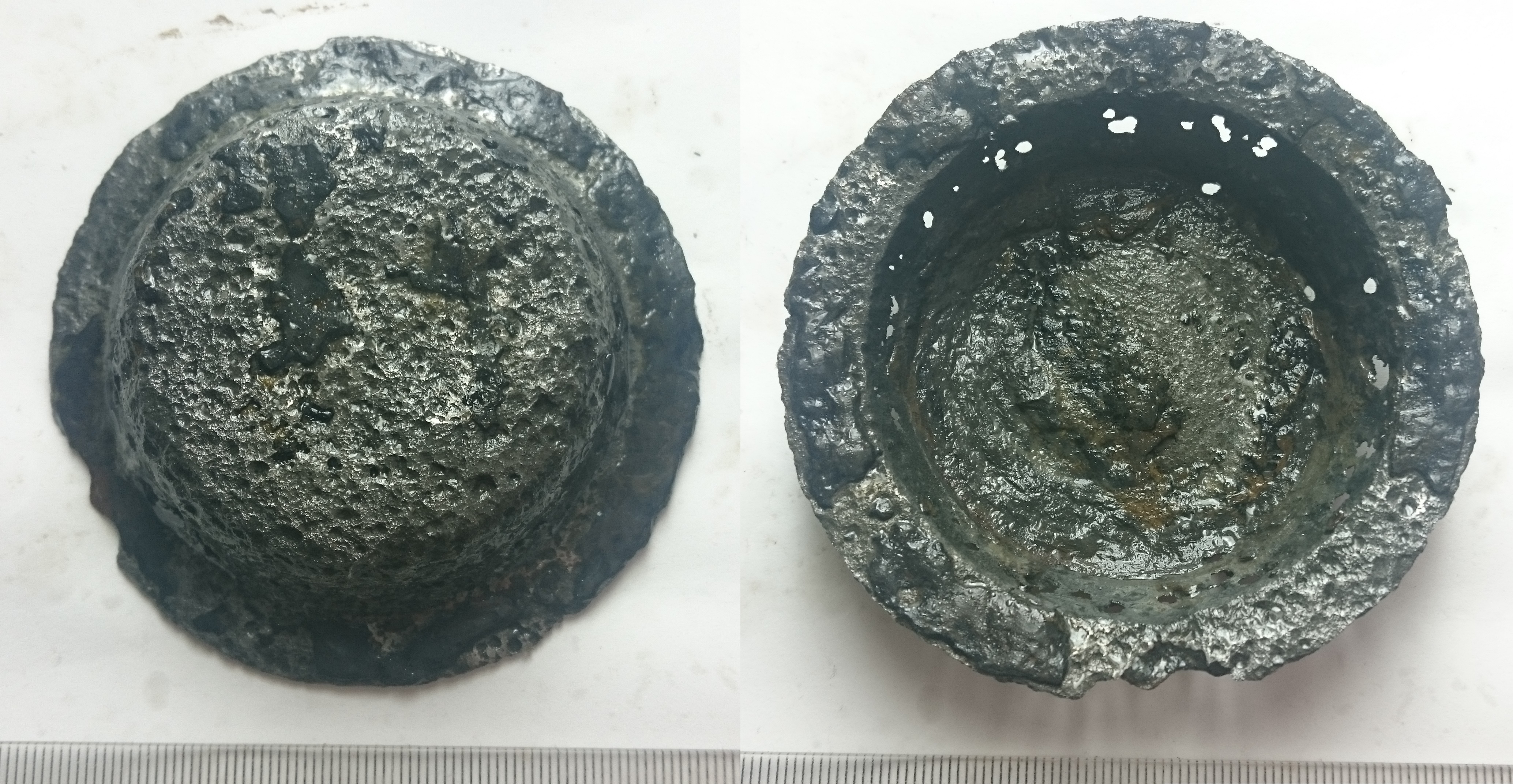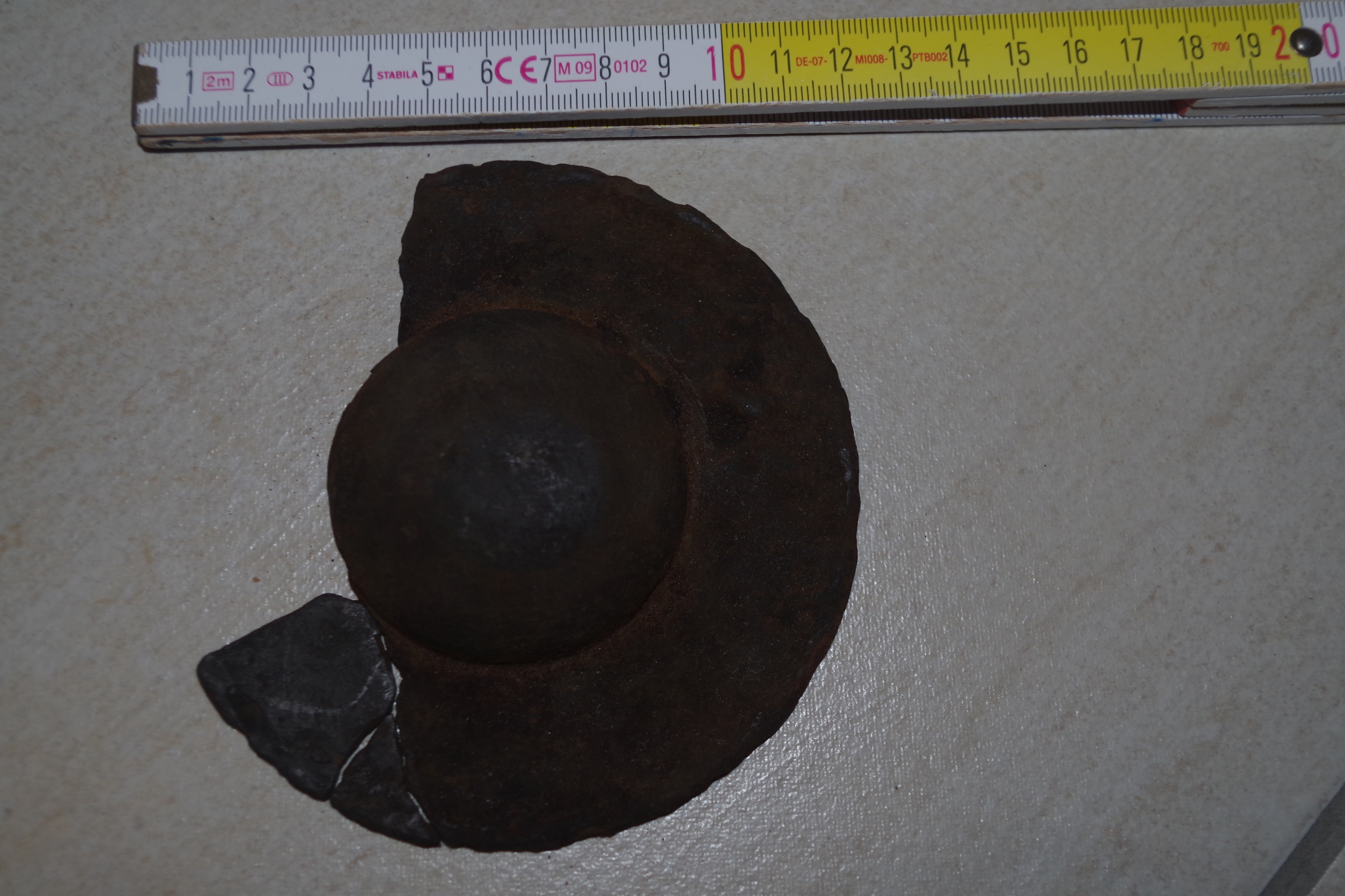 Hierzu jemand eine Idee? Das linke Teil war mit Ösen befestigt, eine ist oben rechts noch zu sehen. Ob die beiden Teile zusammengehören weiß ich nicht, ich habe sie aber auf dem selben Acker gefunden.