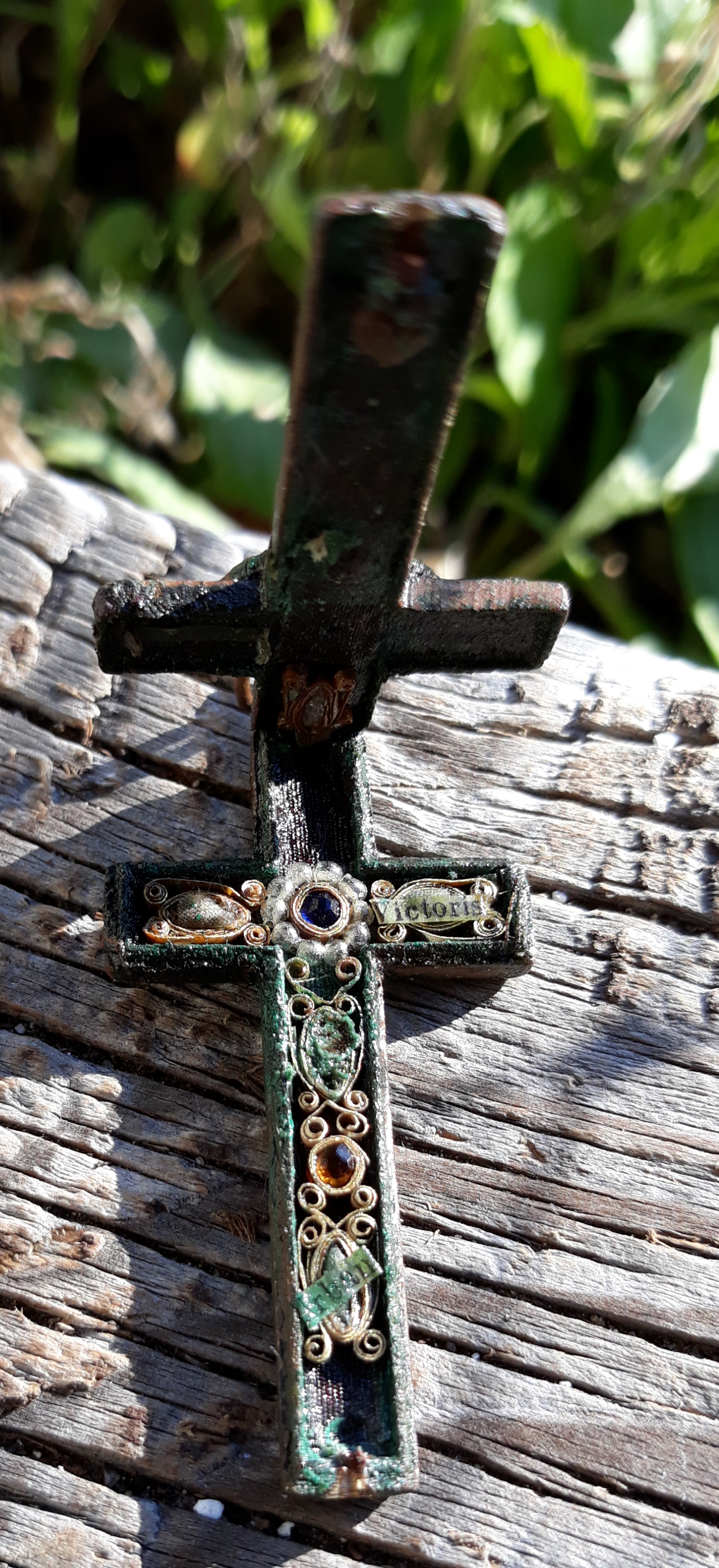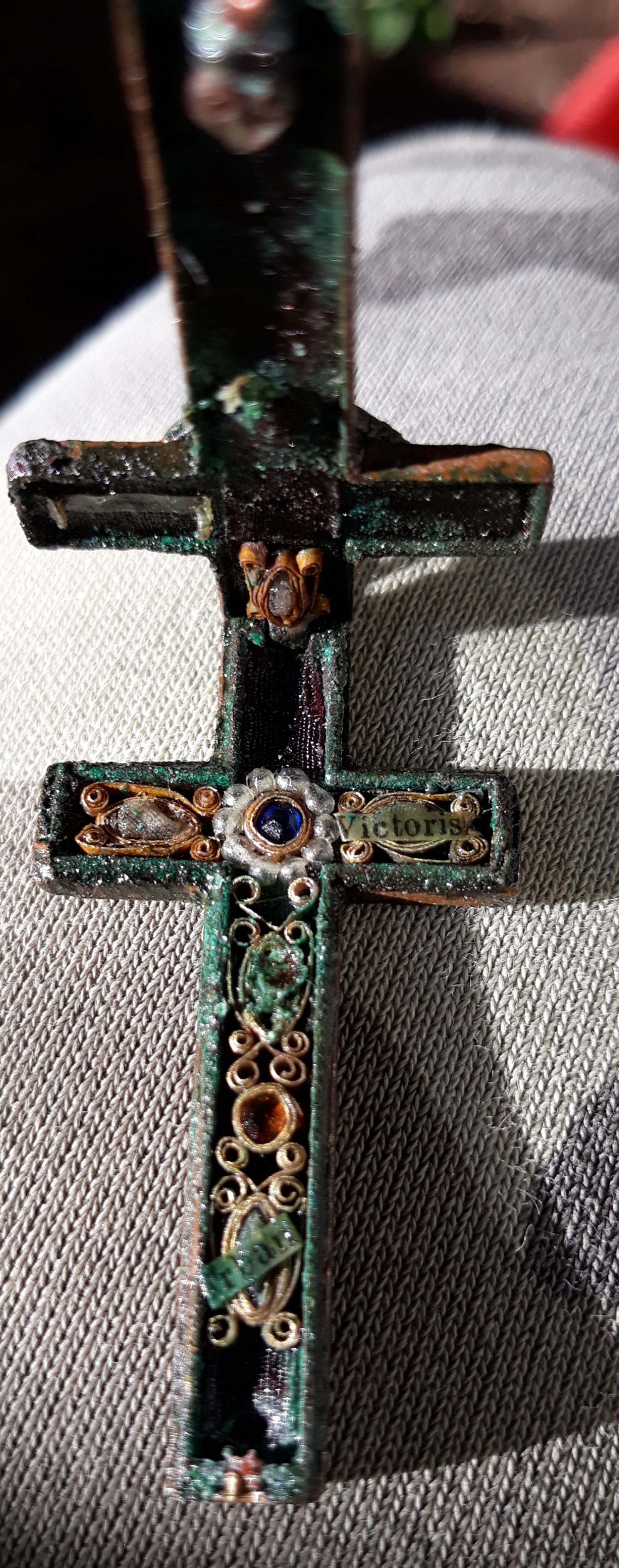 dieses wunderschöne Reliquienkreuz mit Goldfäden und Steinen - ist ein echter Hingucker.