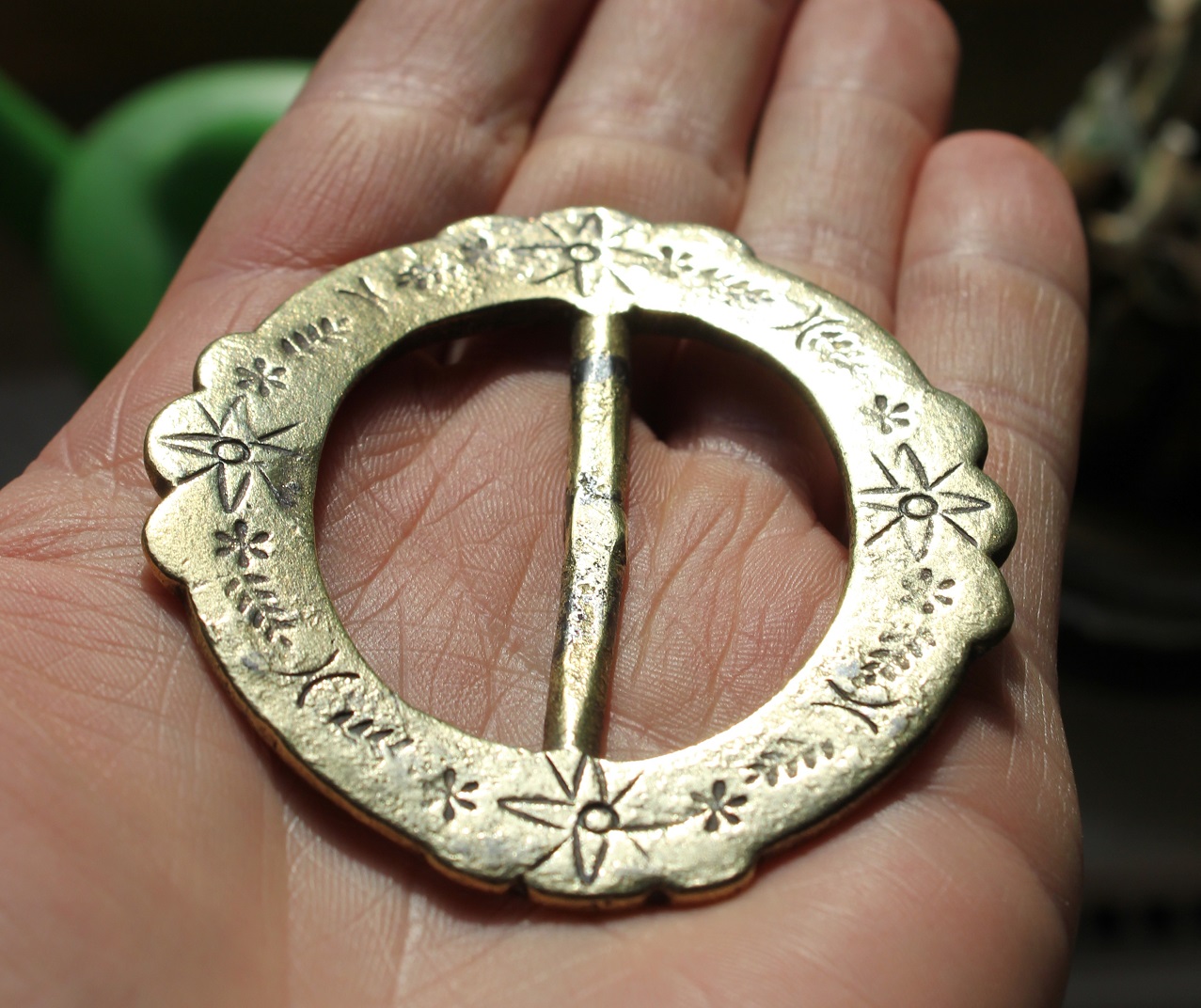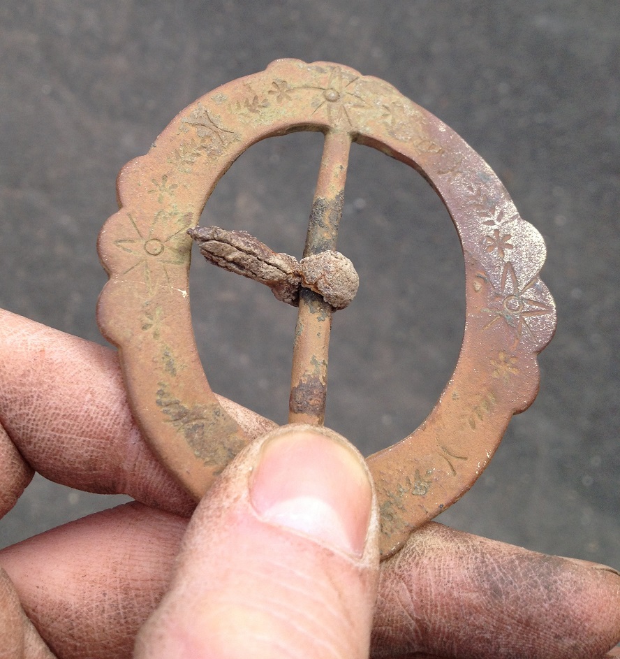 haben im März '13 eine Gürteschnalle in einem Waldbach unterhalb eines Schlosses gefunden - kann Jemand eine Aussage über die Motive/das Alter machen?