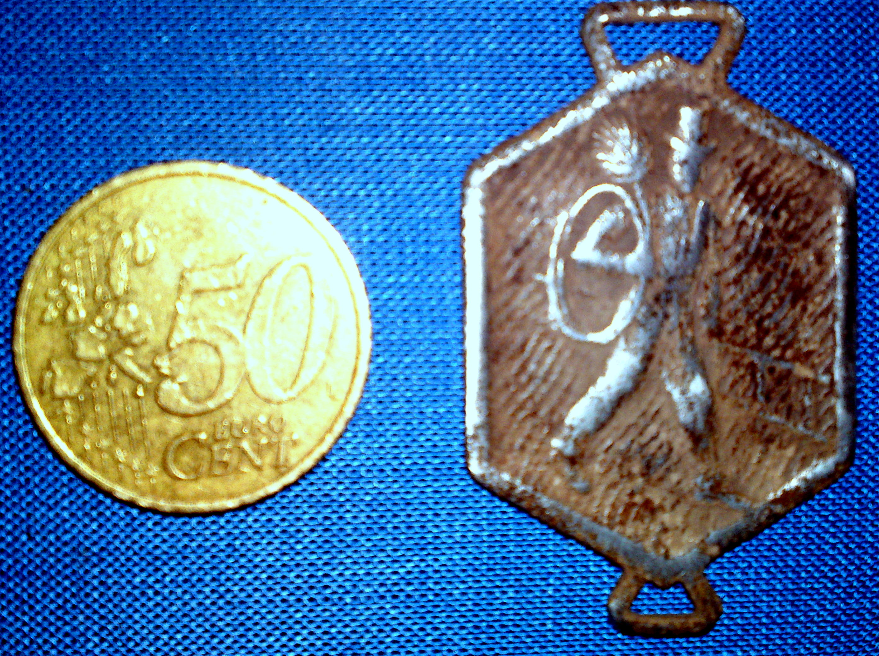 Der Pfennig (Reichspfennig) und der Schonschteinfeger beides Glückssymbole erinnern mich an Sylvester, aber es ist keine Jahreszahl eingeprägt.
