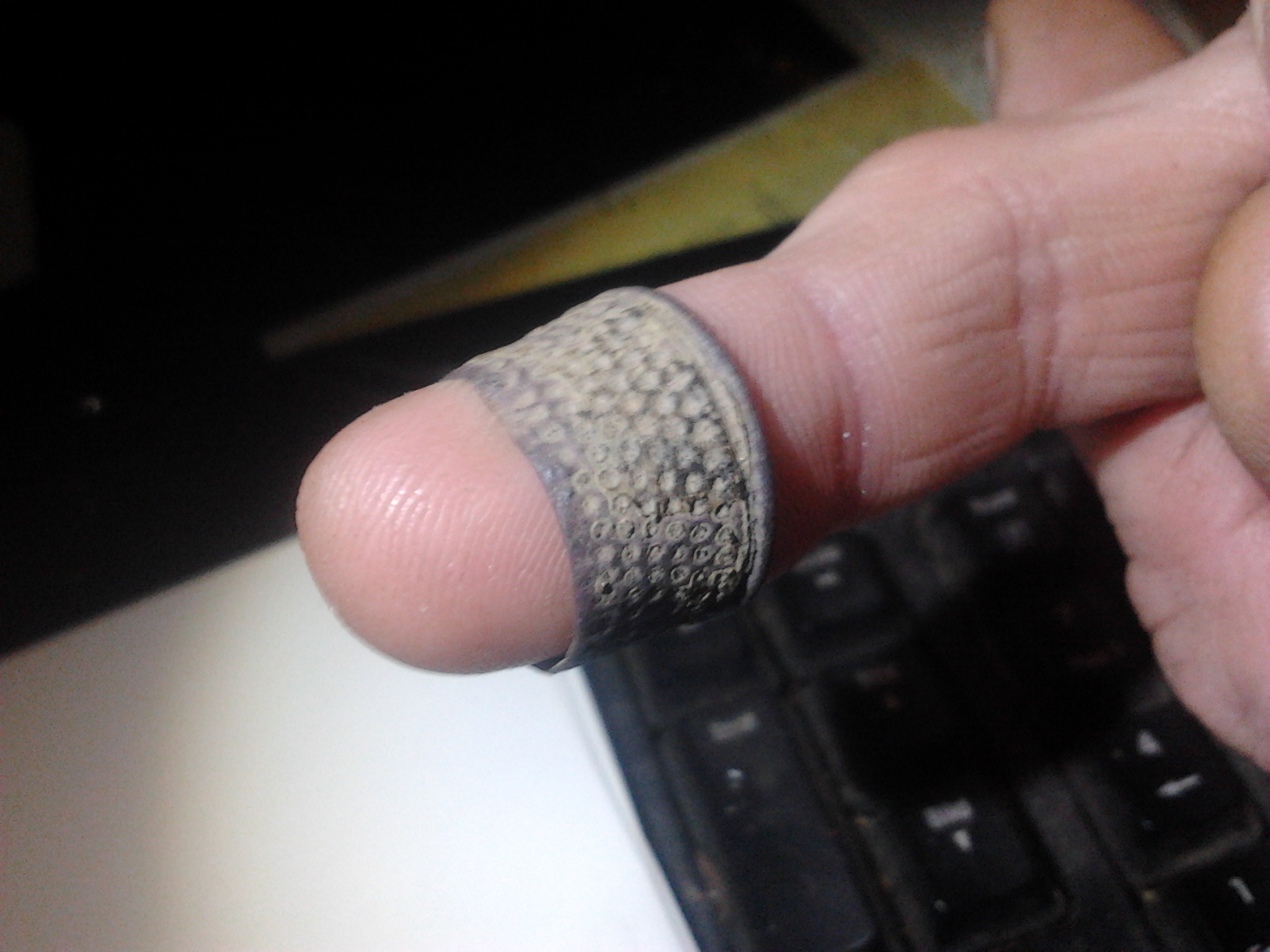 Das ist ein sogenannter Nähring, der oben offen war. Zur zeitlichen Stellung würde ich anhand der Anordnung der Verzierung sagen das er irgendwo 18. 19. Jahrhundert sein muss.