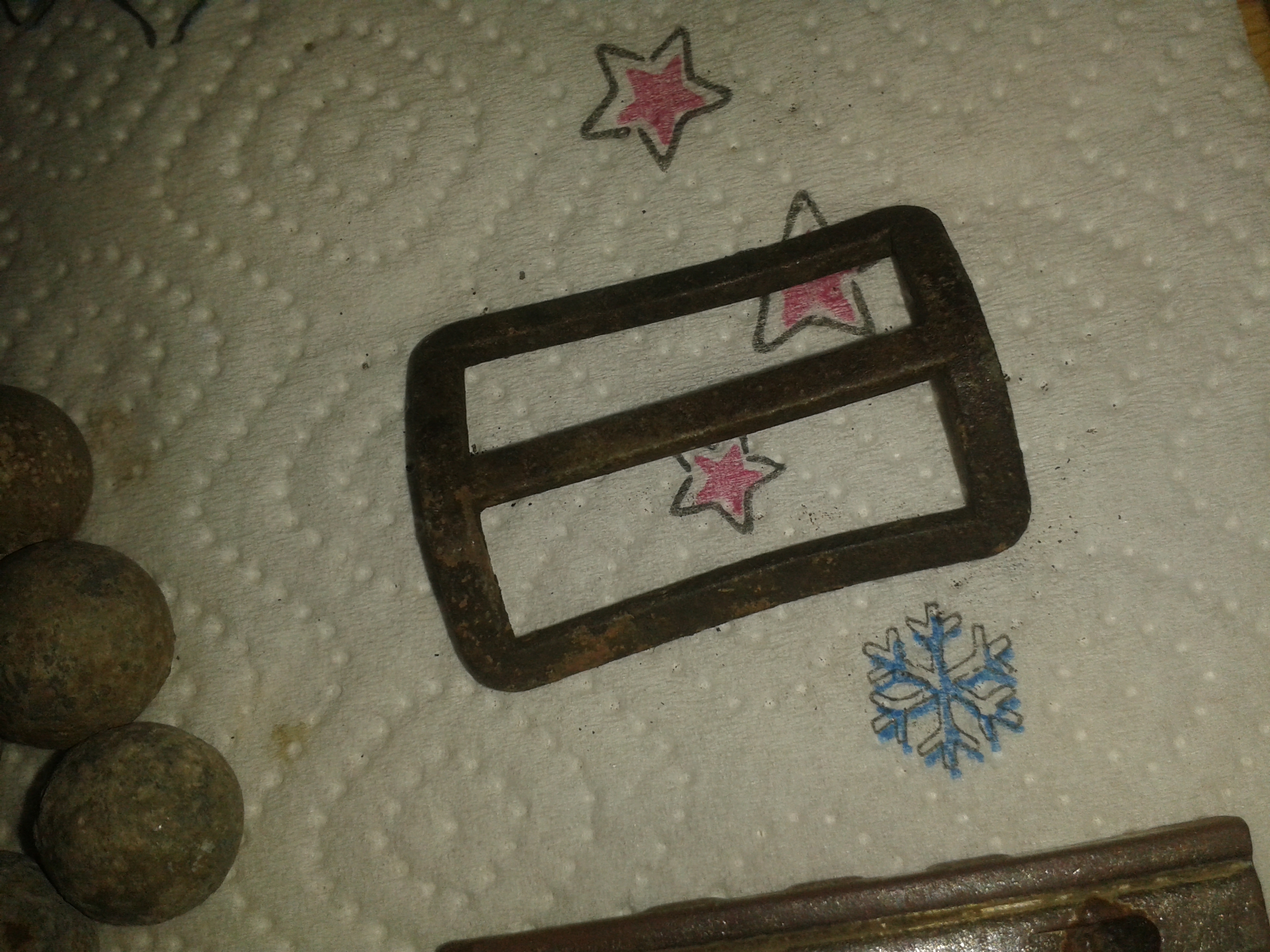 Die Schnalle dürfte auch nicht sehr alt sein, ist aus Messing.