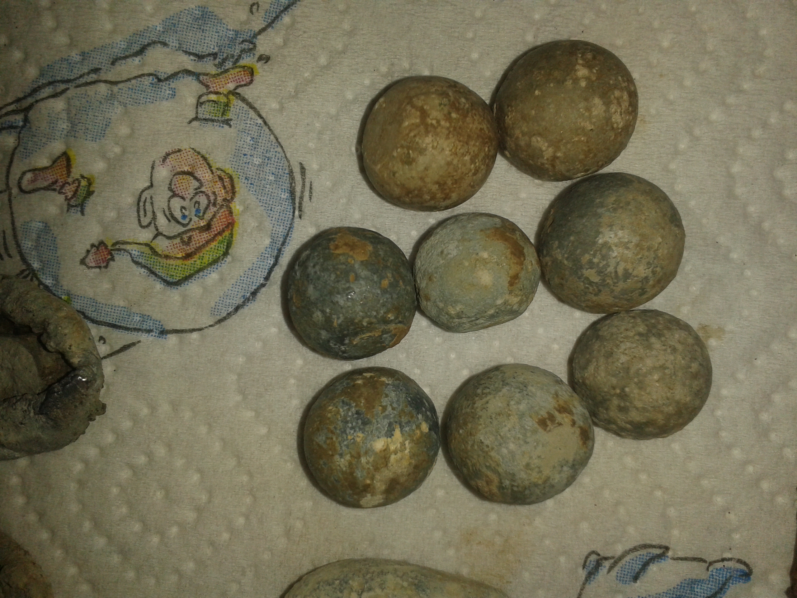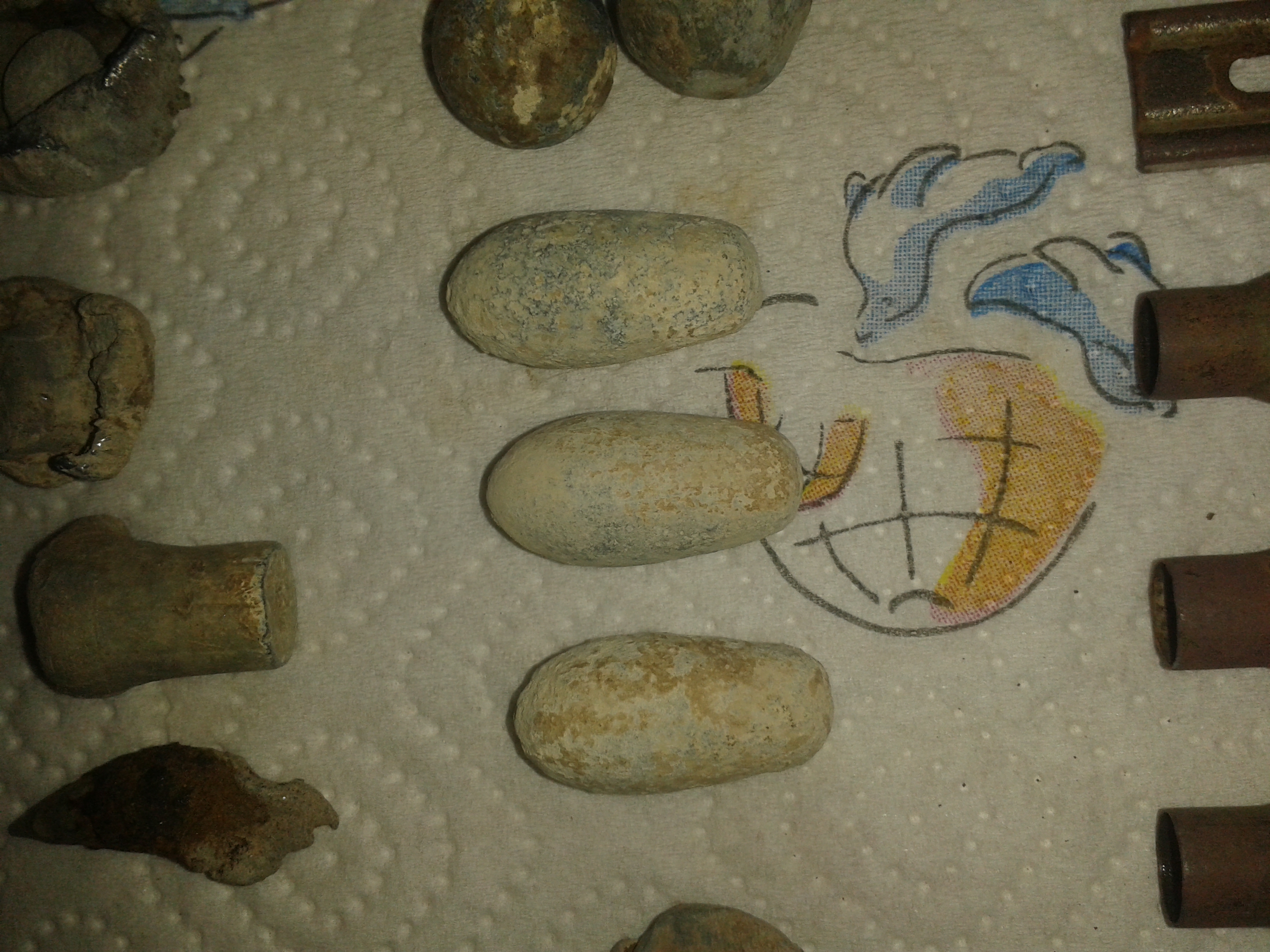 Heute kamen einige Sachen aus dem Boden, das meiste ist bekannt, aber bei drei Geschossen frage ich mich ob das eventuell Nachfolger von Musketenkugeln waren. Von der Stärke am Kopf stimmen sie in etwa mit denen der Musketenkugeln überein, nur das sie dann nach hinten schmaler werden.