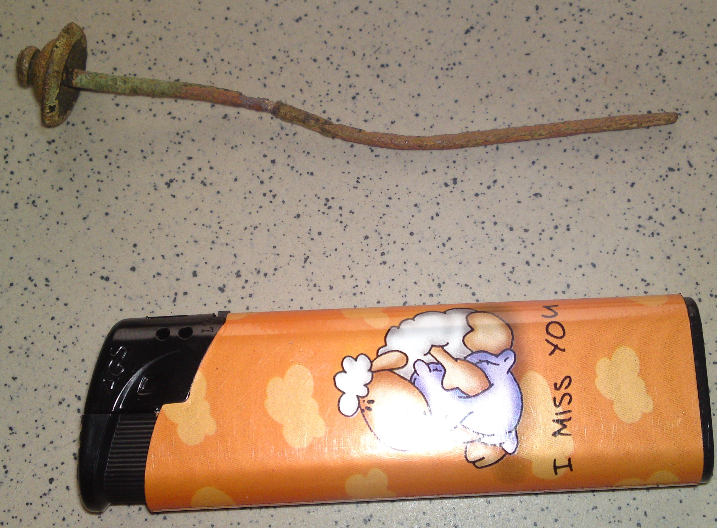 Der Durchmesser Hut 14 mm, Höhe Hut 8mm, Gesamtlänge 94mm, sieht am Ende nach einer Bruchstelle aus.
