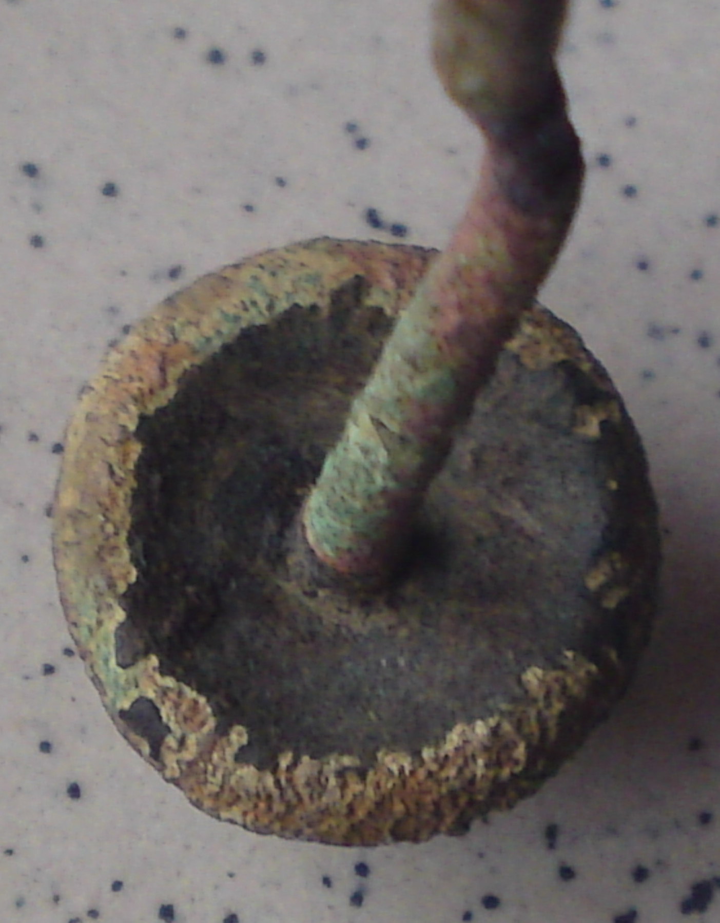 Auf den Fotos schlecht zu erkennen, der Stift ist mit dem "Hut" vernietet.