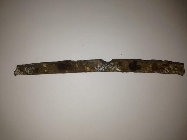 hallo habe da was gefunden weiß aber nicht was es ist würde aber sagen oder Tipen ein Nagel ist 14-15 cm lang und die Form ist Trapez förmig ist sehr leicht also kein Eisen