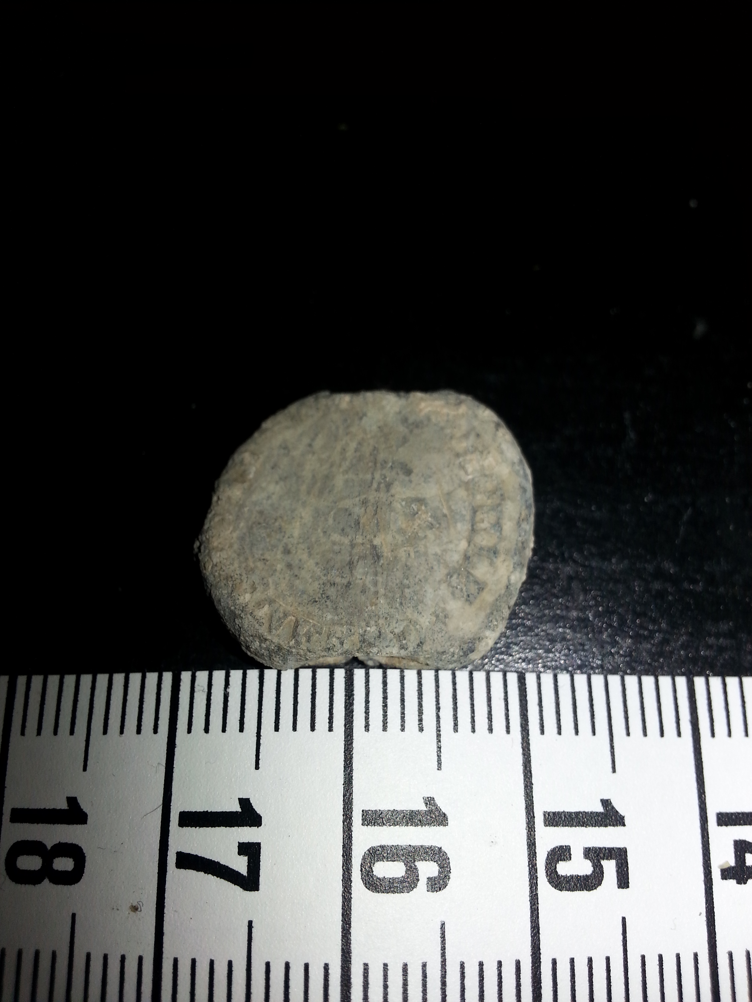Erst dachte ich es wäre eine Münze, aber nach dem ersten Reinigen sah ich das es eine Durchführung hat, also wohl eher eine Plombe oder so. Was meint ihr?