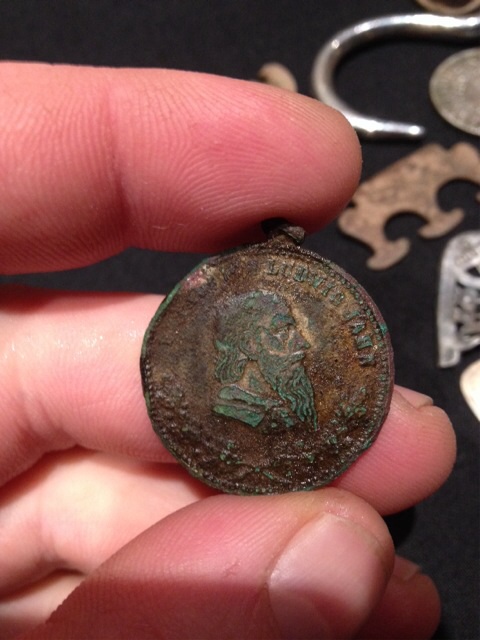 Hallo Dalmat schöne Funde haste da, der alte Silber 5 ist schönwas ist das für ein Anhänger den du in da Hand hast? Mfg matt.