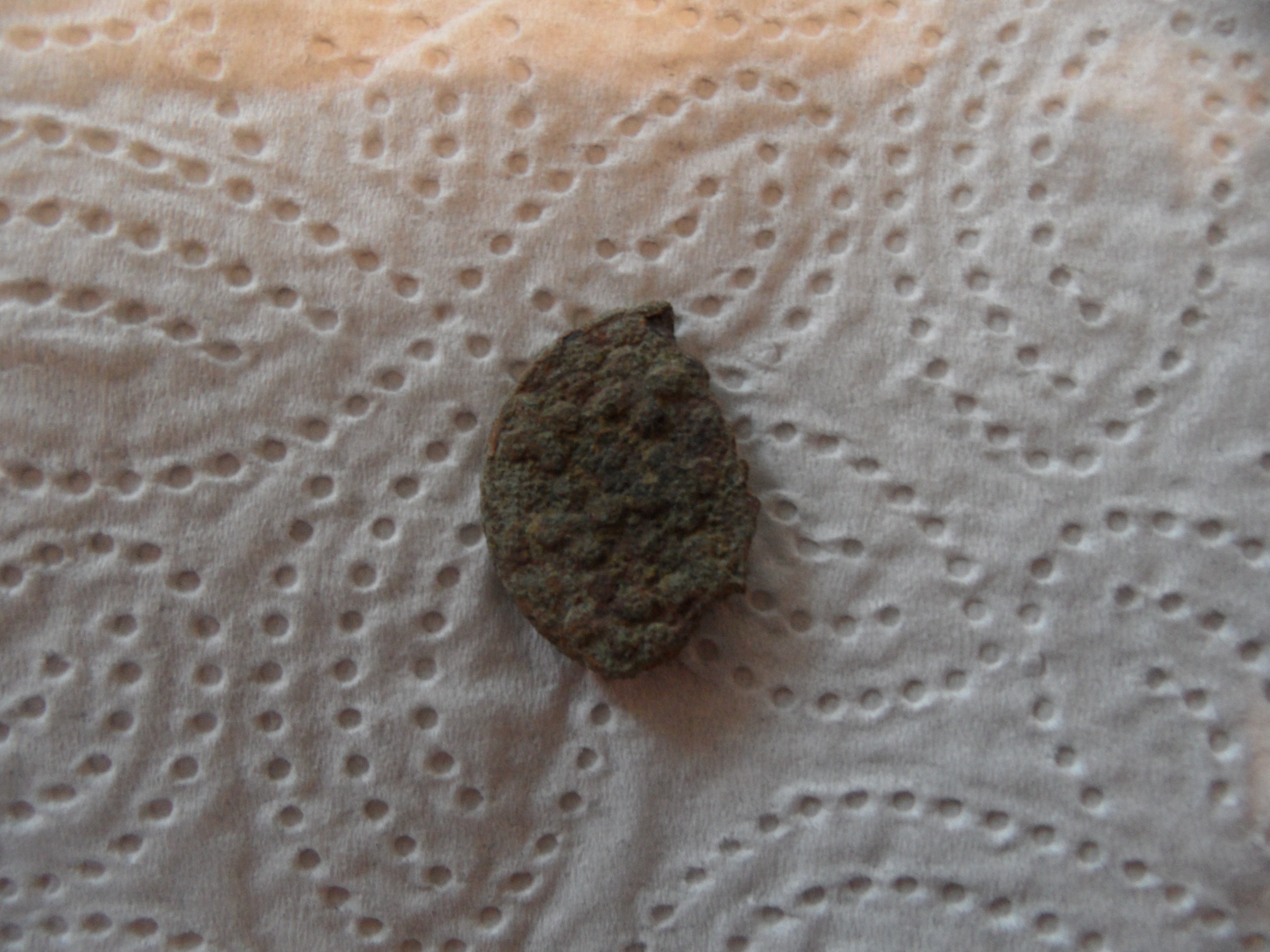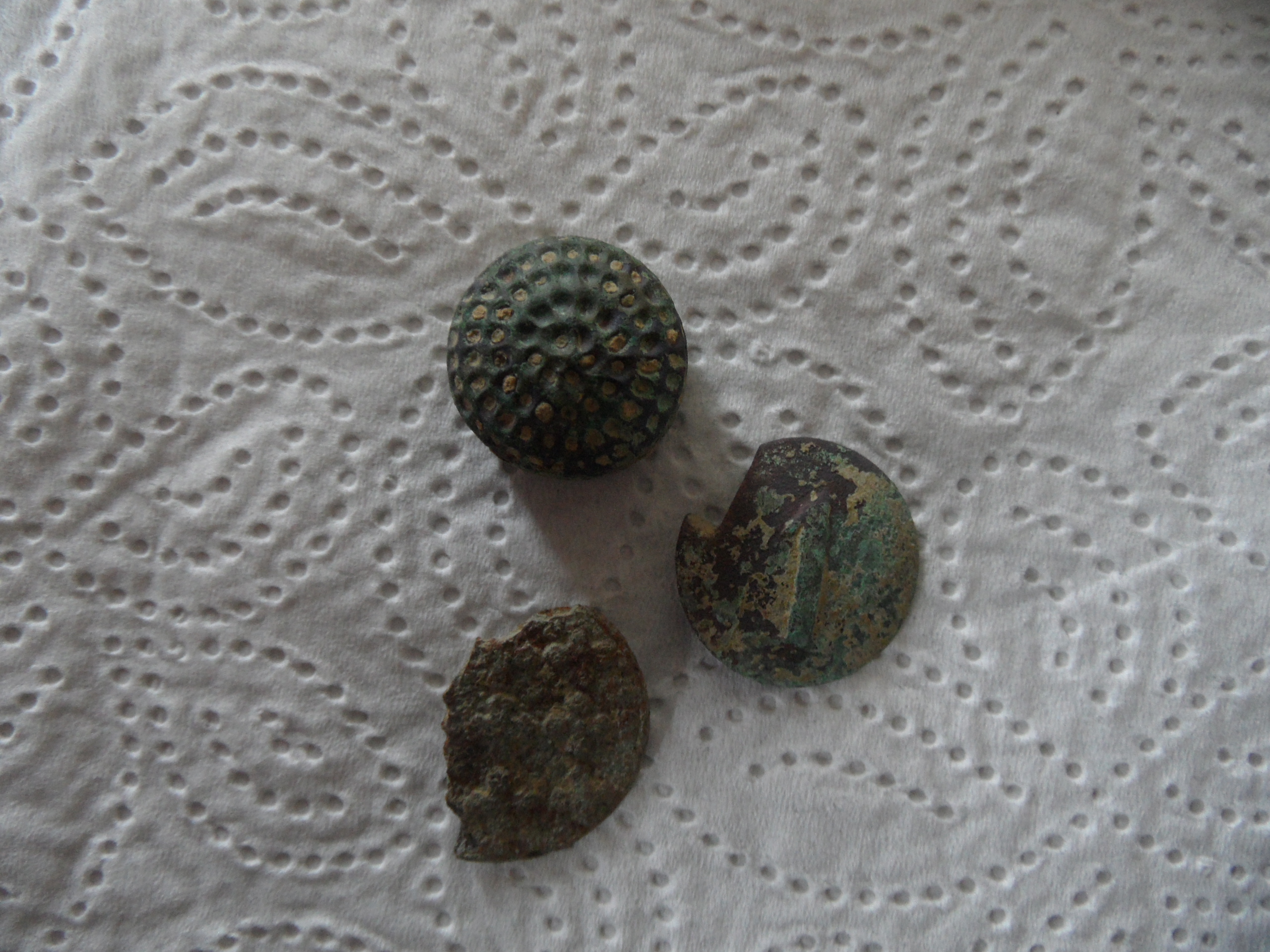 Der abgebrochene Knopf hat Kreuze vorne drauf.