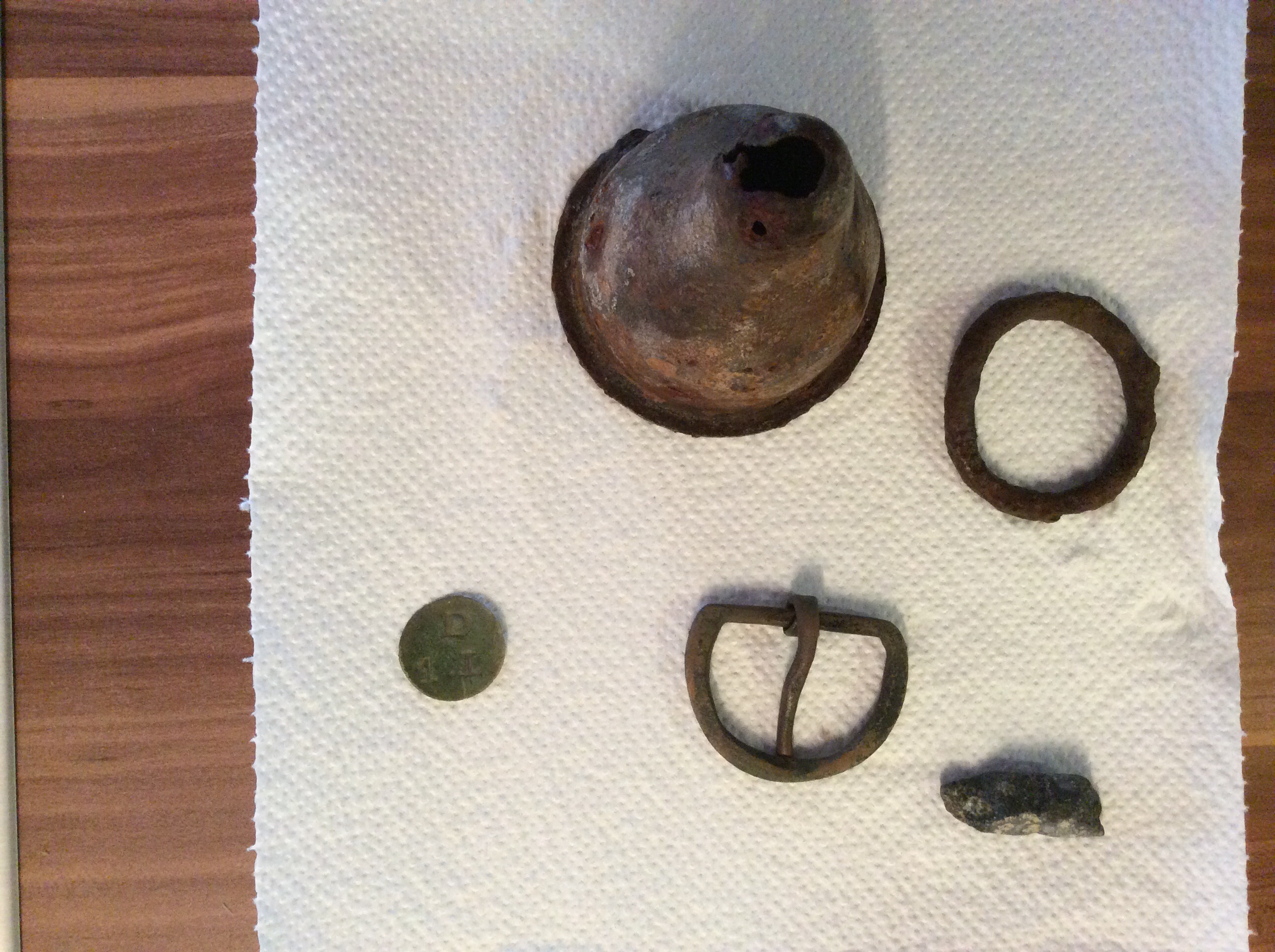 Habe heute mal ein paar Sachen gefunden. Bei zwei Dingen hab ich keine Ahnung was es sein könnte. Das Große Teil ist aus einem Flussbett ca. 15cm tief. Und die Plakette auf einem Acker ca. 10 cm tief. Wär cool wenn jemand was weiß.