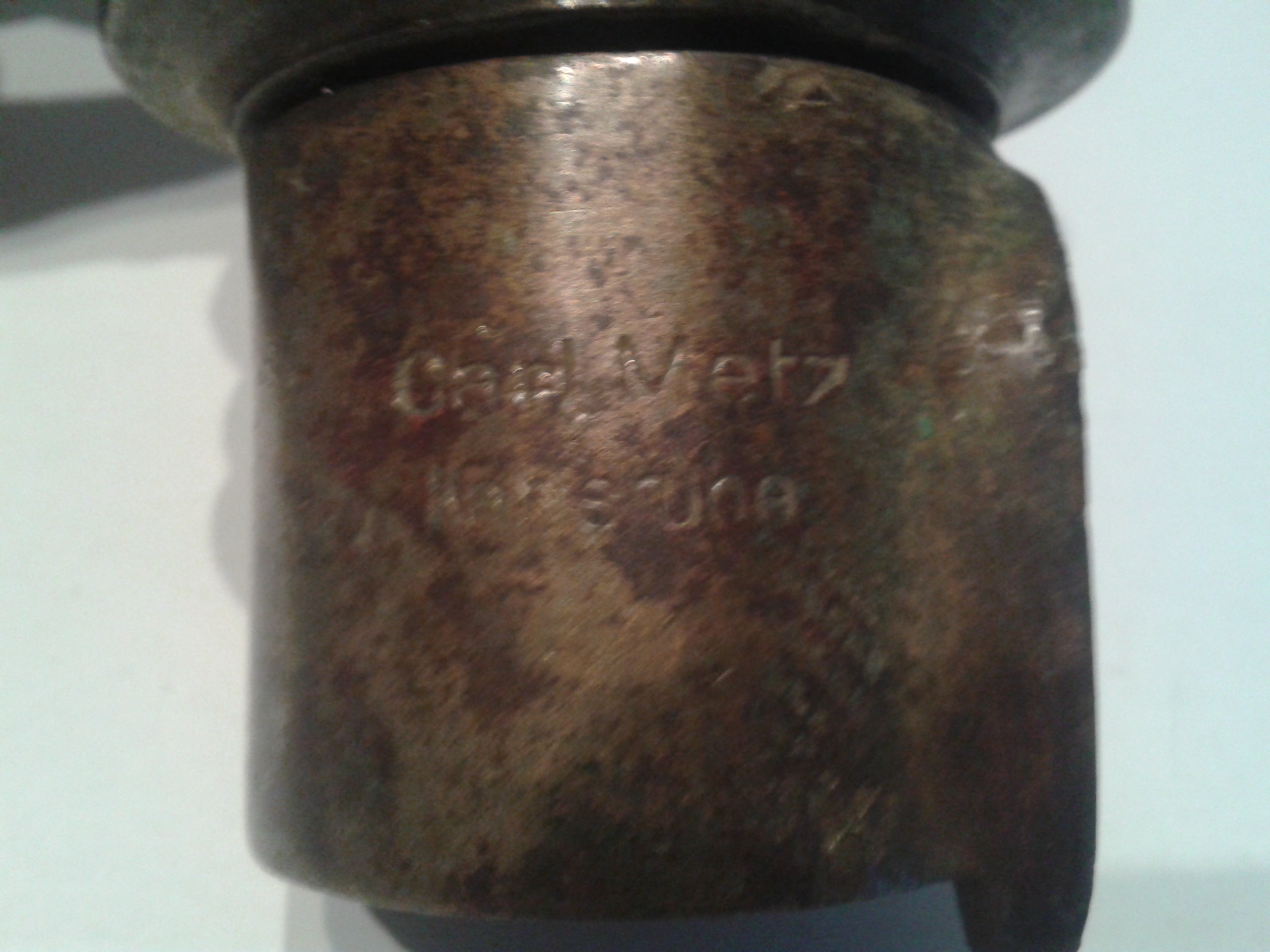 Dann kamen die Buchstaben DRGB zum Vorschein, Deutsches Reich Gebrauchs Muster und der Name Carl Metz, Karlsruhe.