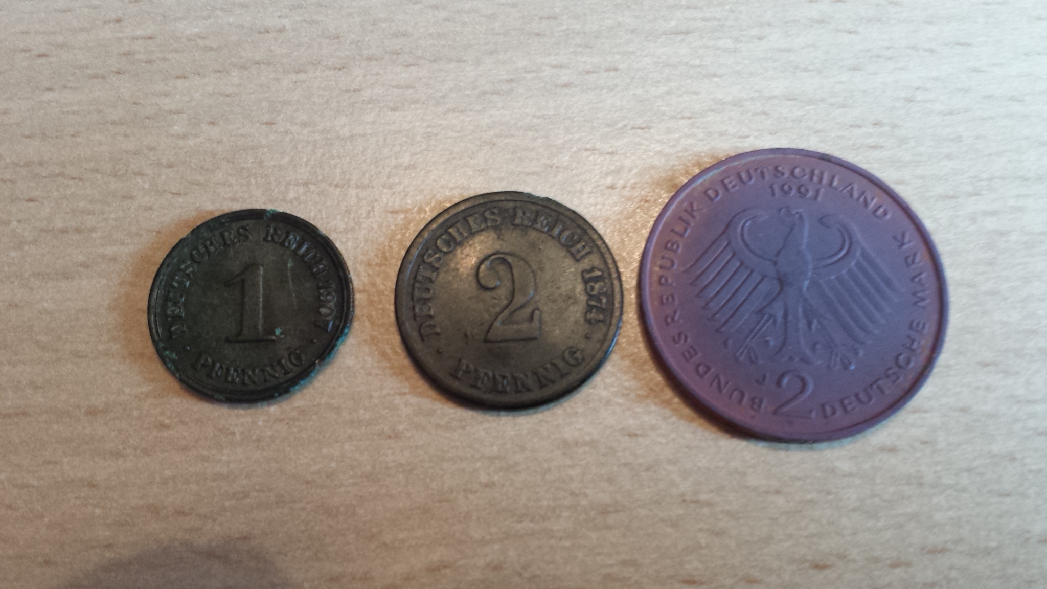 hatte letzten Lauf 2Mark die aussahen wie von 1756 .....Plank seine Riesenrübe unterm Grünspan anfangs kaum zu sehen u sah eher aus wie Kopffusion von Gandhi u Bismarck
