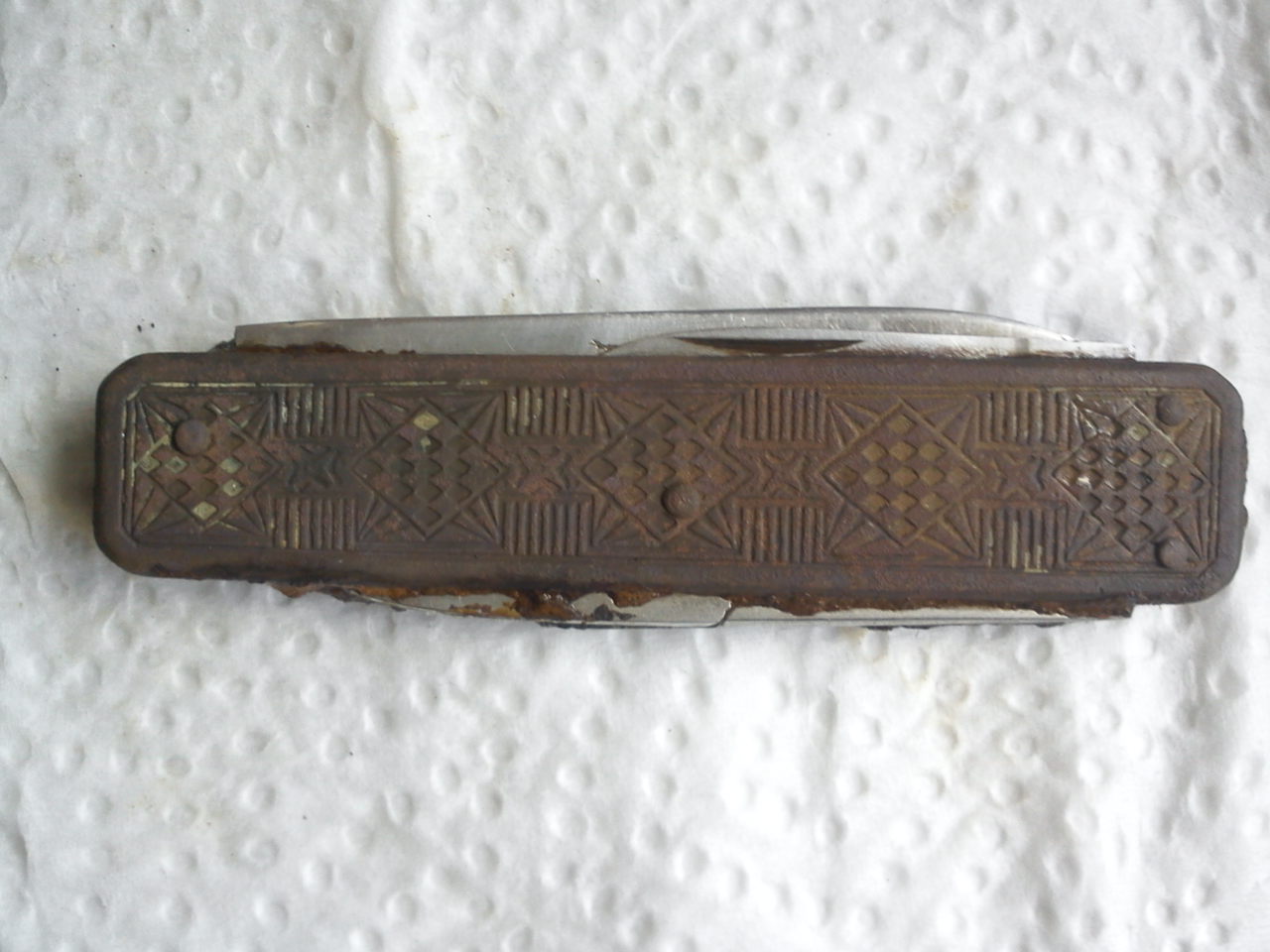 Das Taschenmesser ist eins im Toledostyle. Toledo, eine spanische Stadt, hat eine lange Messertradition. Später in den 50/60/70 Jahren wurde dieser Stil bei uns übernommen und solche Messer z.b. als Werbegeschenke gern gesehen. Heute sind solche Messer begehrte Sammelobjekte. Wenn du es reinigst und die Klinge lässt sich öffnen, kannst du evtl. den Hersteller feststellen.