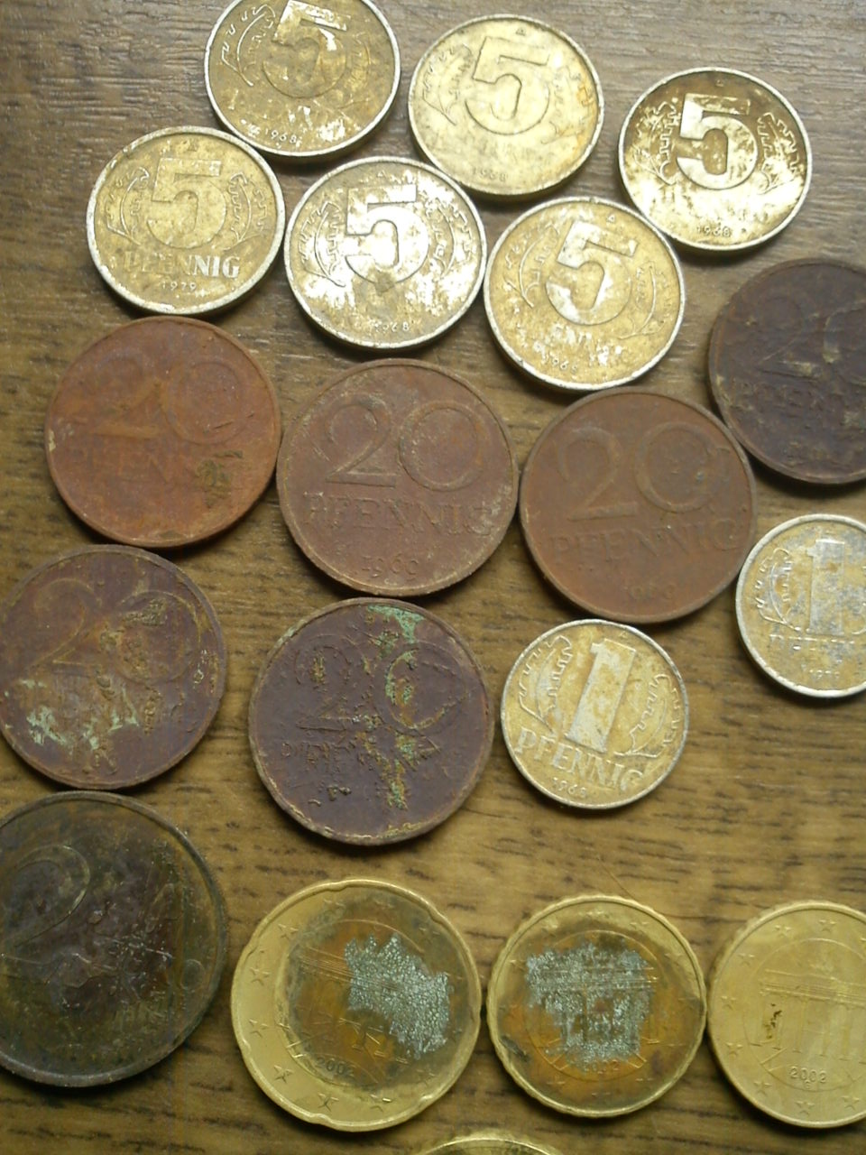 -7,40 Euro und 23,93 Mark der DDR gefunden. Insgesammt genau 115 Münzen.