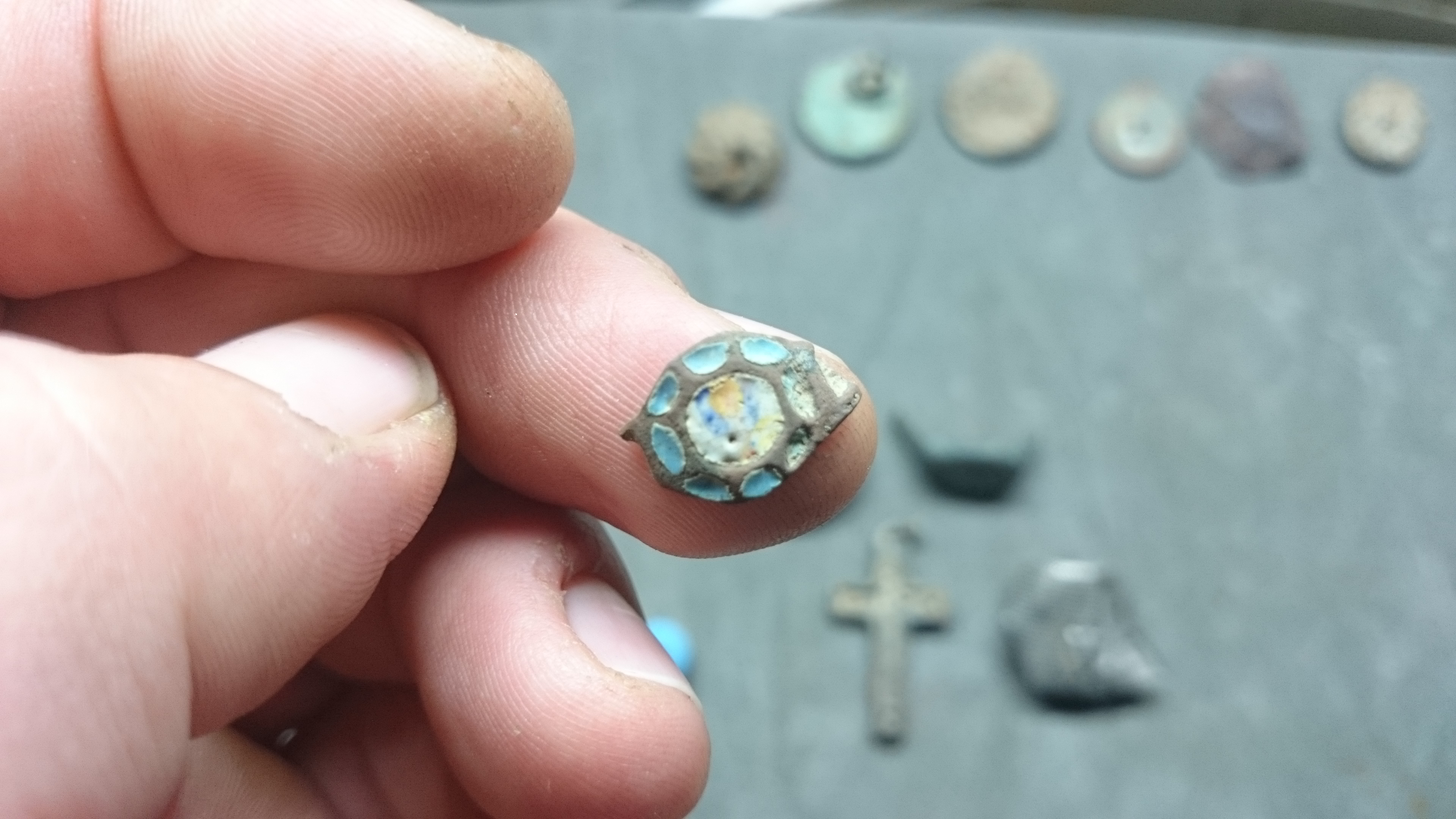bei der Fibel wäre ein Bild von der Rückseite gut. Vermute nämlich das es keine Fibel, sondern der Deckel einer römischen Siegelkapsel ist.