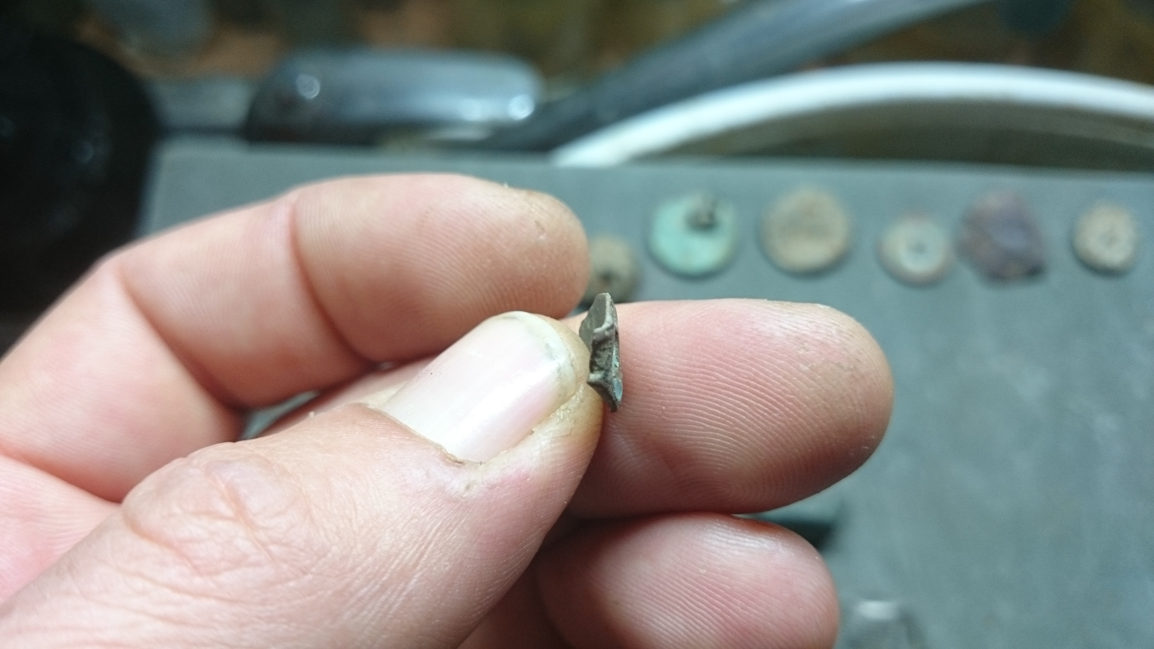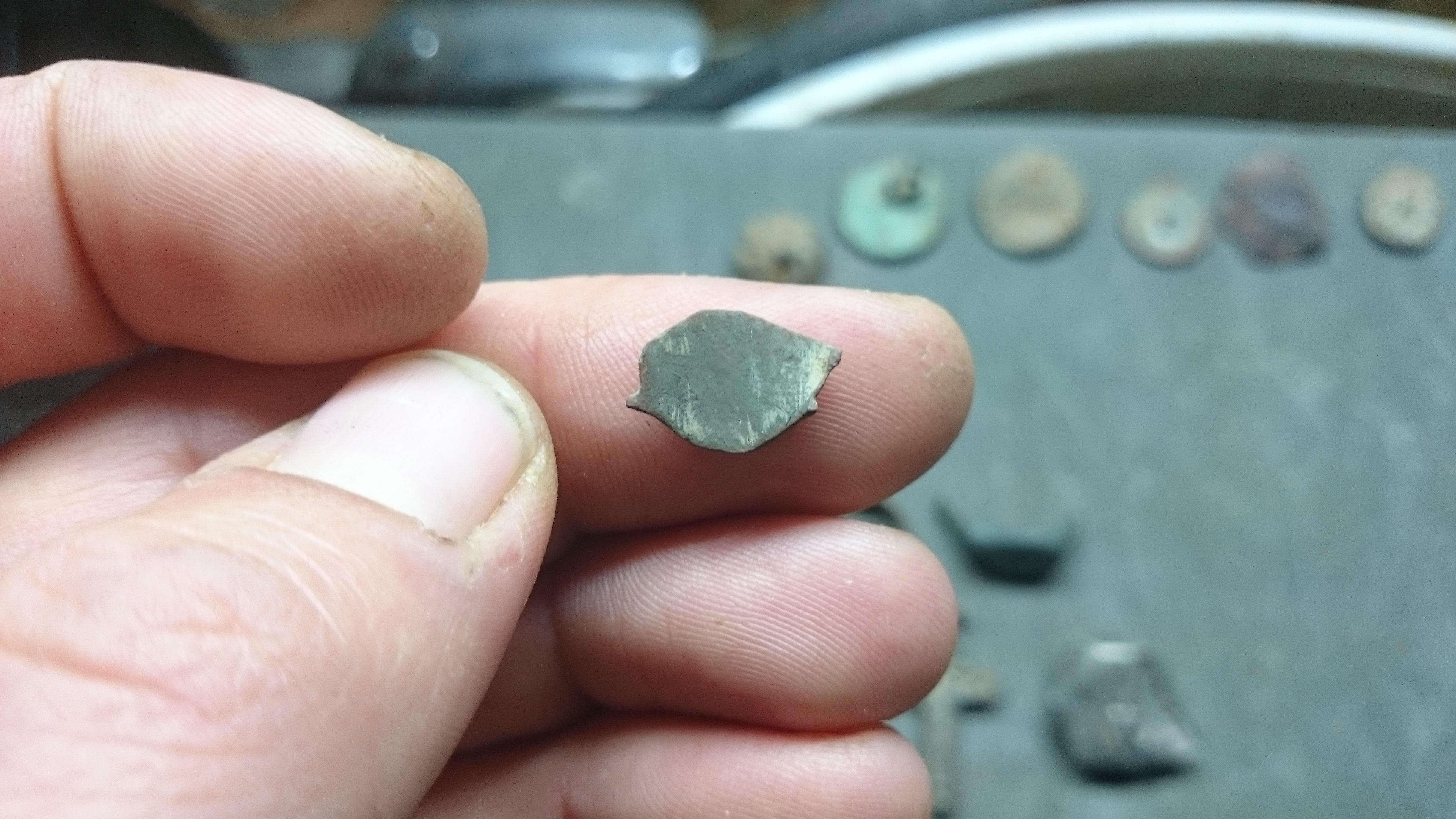ne leider kein Deckel einer Siegelkapsel. Sieht mit der Wölbung und den gebrochenen Teilen links und rechts am Rand, am ehesten aus wie das Fragment eines Fingerrings.