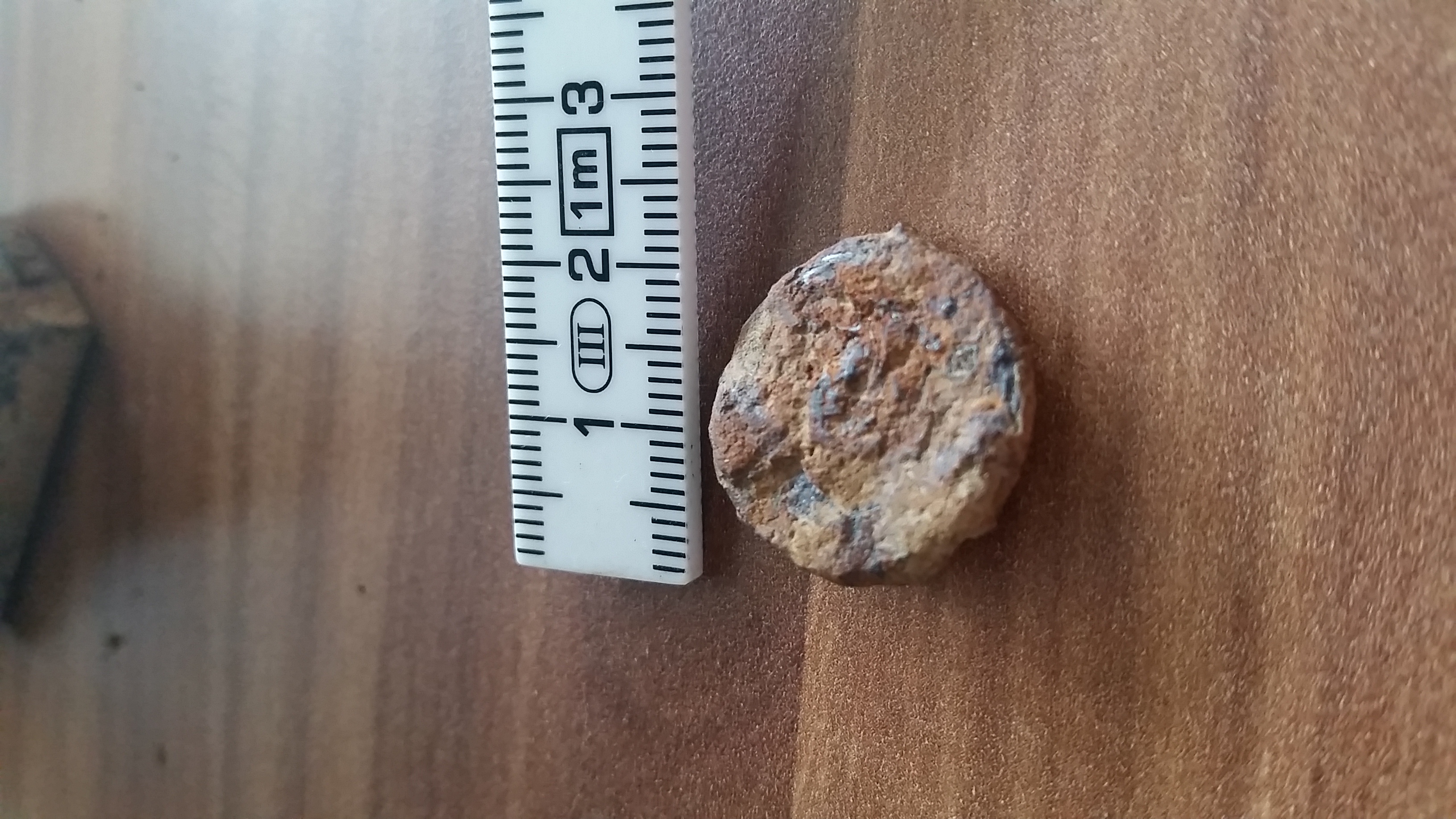 Das Bild von der Rückseite sieht so aus, als ob da eine Öse rausschaut. Dann wärs ein Knopf. Von einem armen Knopf, da aus Eisen.