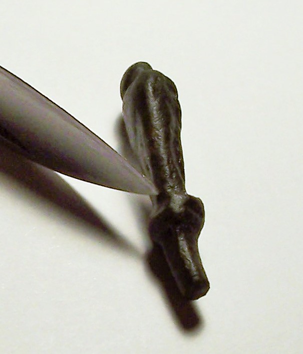 "figurliche" Gestalt, auf Sockel mit rauteförmigen Endstück. 38mm hoch, 10mm breiteste Stelle..