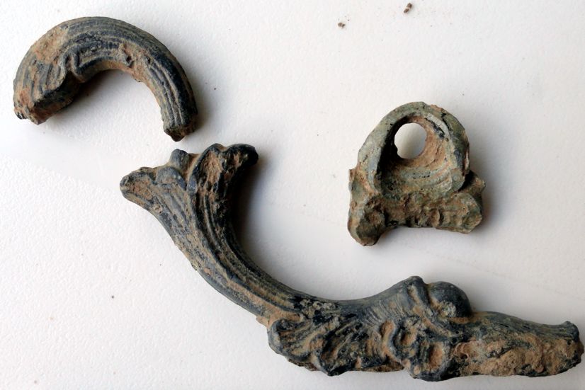 Wenn man sich mal das Bild 3. Anschaut sieht man an dem größtem Objekt ein „Griff“ andem eine mulde ist, wo ein Stock rein passen könnte?! Und das andere Objekt könnte eine Zierde auf der Vorderseite sein?! Zum 3. Objekt mit dem loch habe ich nur keine Idee?!
