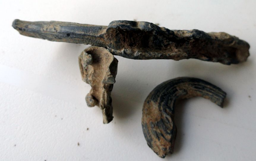 Beifunde waren kupferne dünne Blechteile im umkreis von 5 Metern, ich denke aber nicht dass die dazu gehören.