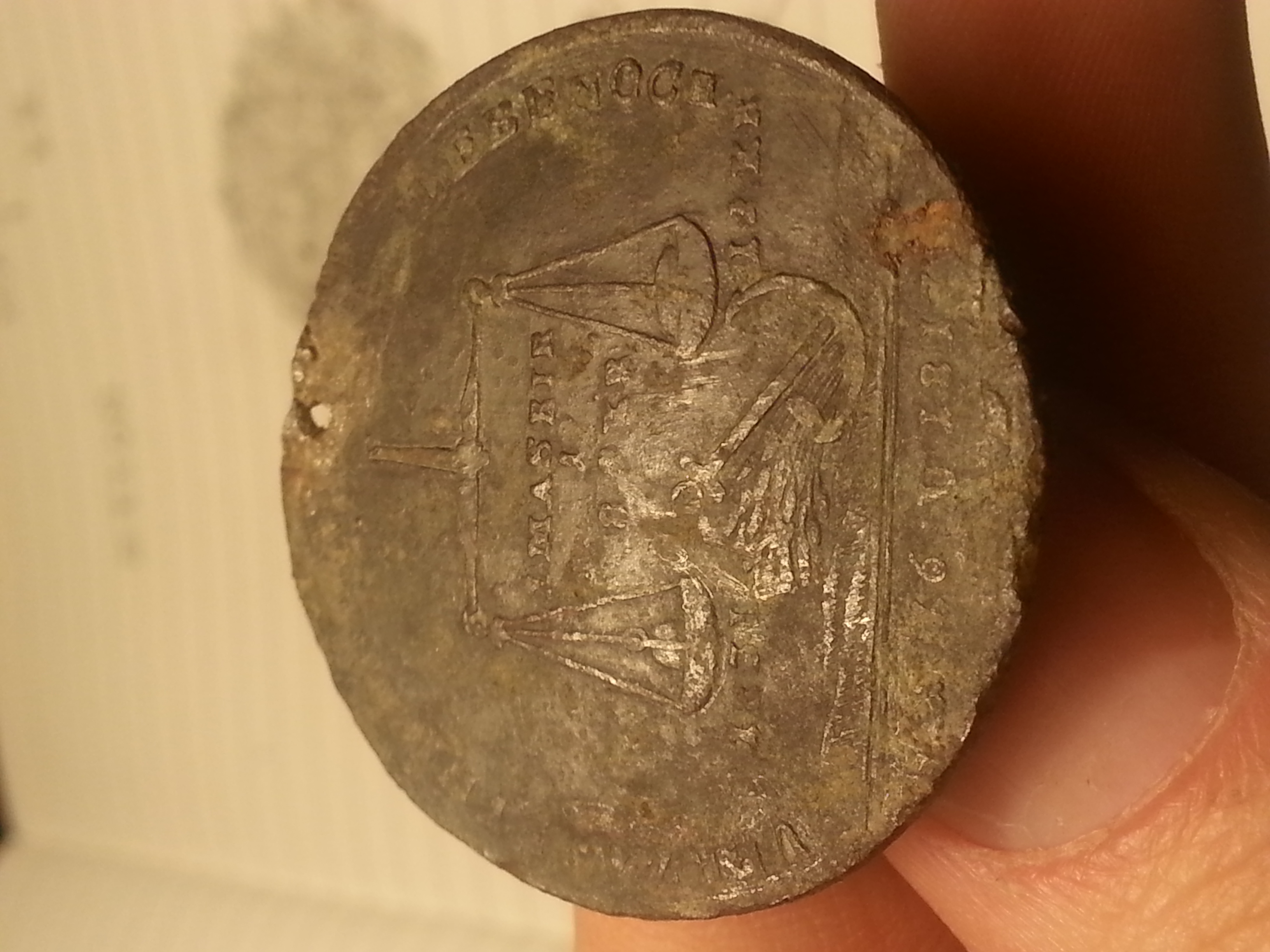 Nachdem ich die Münze dann gereinigt habe konnte ich auf einige Worte schließen. So kamen m.E. nach "Maseir" "Lebe Hoch" "I2 KR" und die Jahreszahlen "1816 1817" zum Vorschein. Auf der Rückseite konnte man klar "Ietton" lesen.