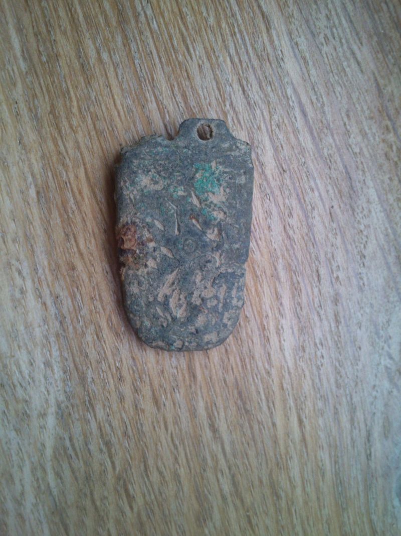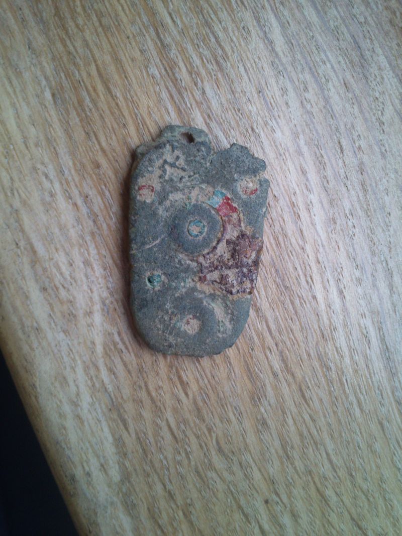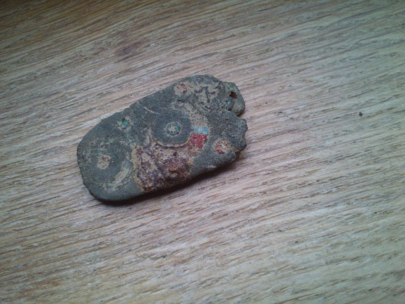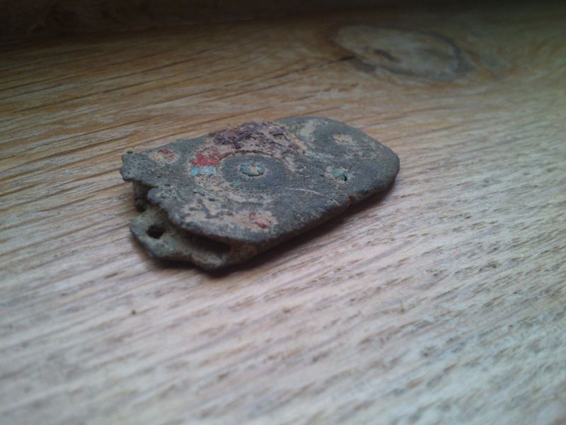 Scheint eine Riemenzunge zu sein, sehr Massives Vollmaterial, mit Kreisaugenverzierung!