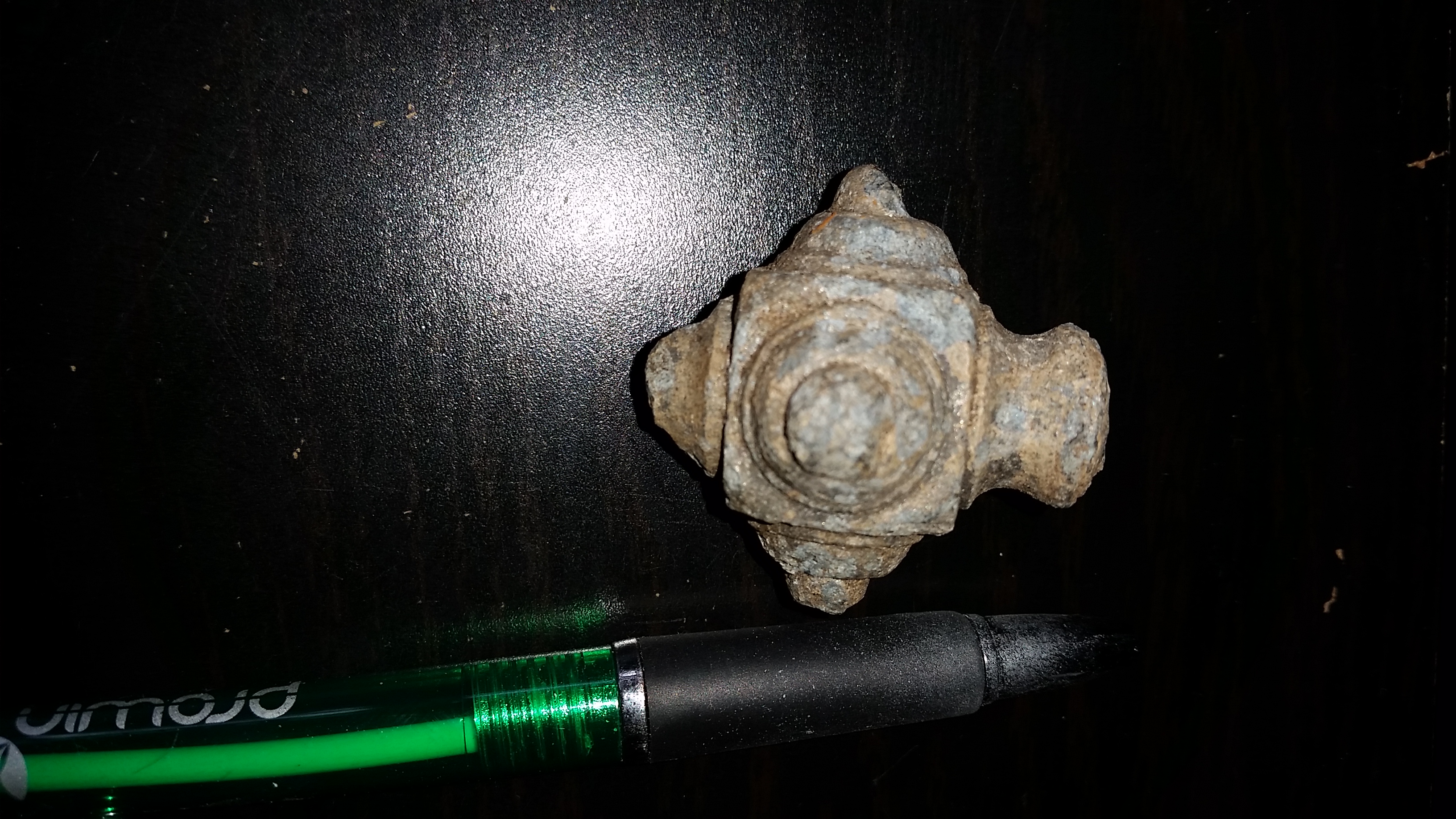 Hey an alle.... Habe dieses Ding an ner Oberfläche gefunden... Sieht so aus als ob es blei wäre da es verdammt schwer ist für die größe! Hat jemand eine Idee? Am hinteren Teil ist irgendwas ab bzw weg gebrochen!