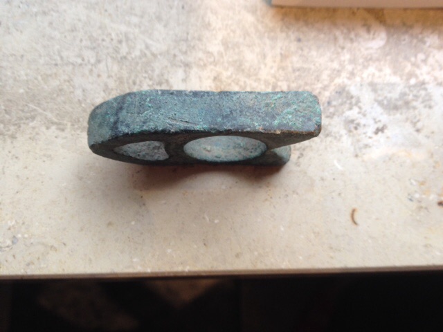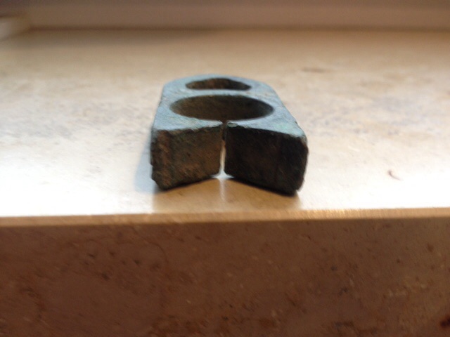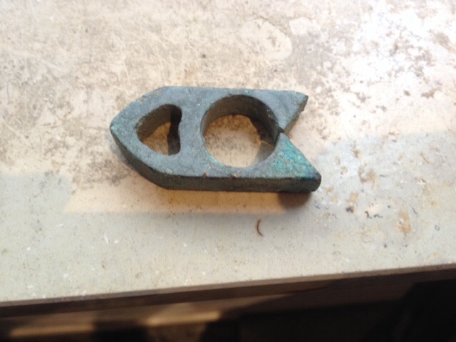 sieht für mich nach einer Klemmbacke aus zum Glasblasen, meine die sahen so ähnlich aus.