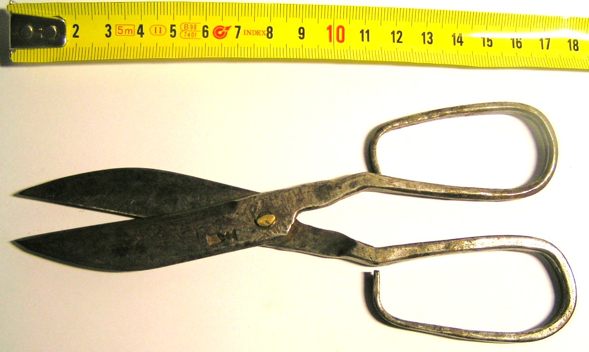 hat links und rechts jeder Scherenhälfte eine Punze eingeschlagen in Form eines Kelches.