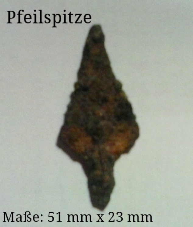 Mittlerweile grob gesaeubert sind wir der meinung,dass es sich hier um eine pfeilspitze handelt.