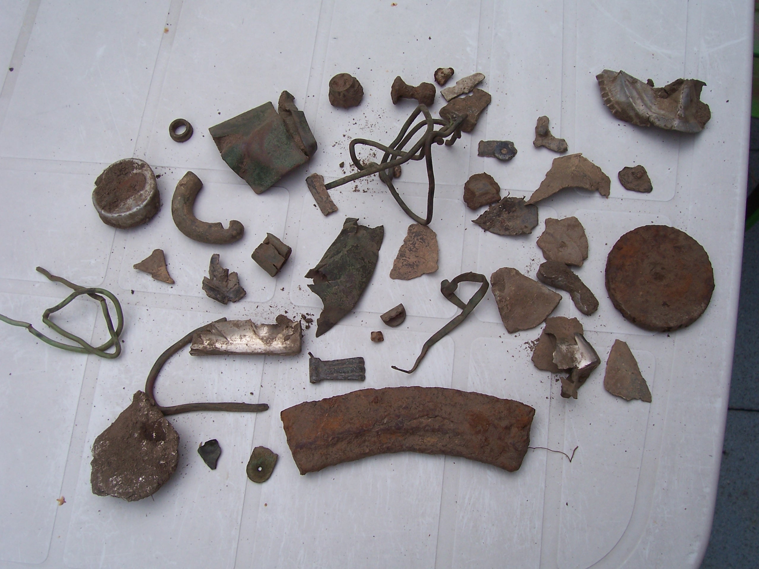 2 Münzen und 1 Uniformknopf Preussen (Friedrich II.), 1Pfennig 1811, DDR-Aluchips, 1 netter Kronkorken :lol:, 10g Gewicht , Teilstück von Schnalle und einige Fragmente von....