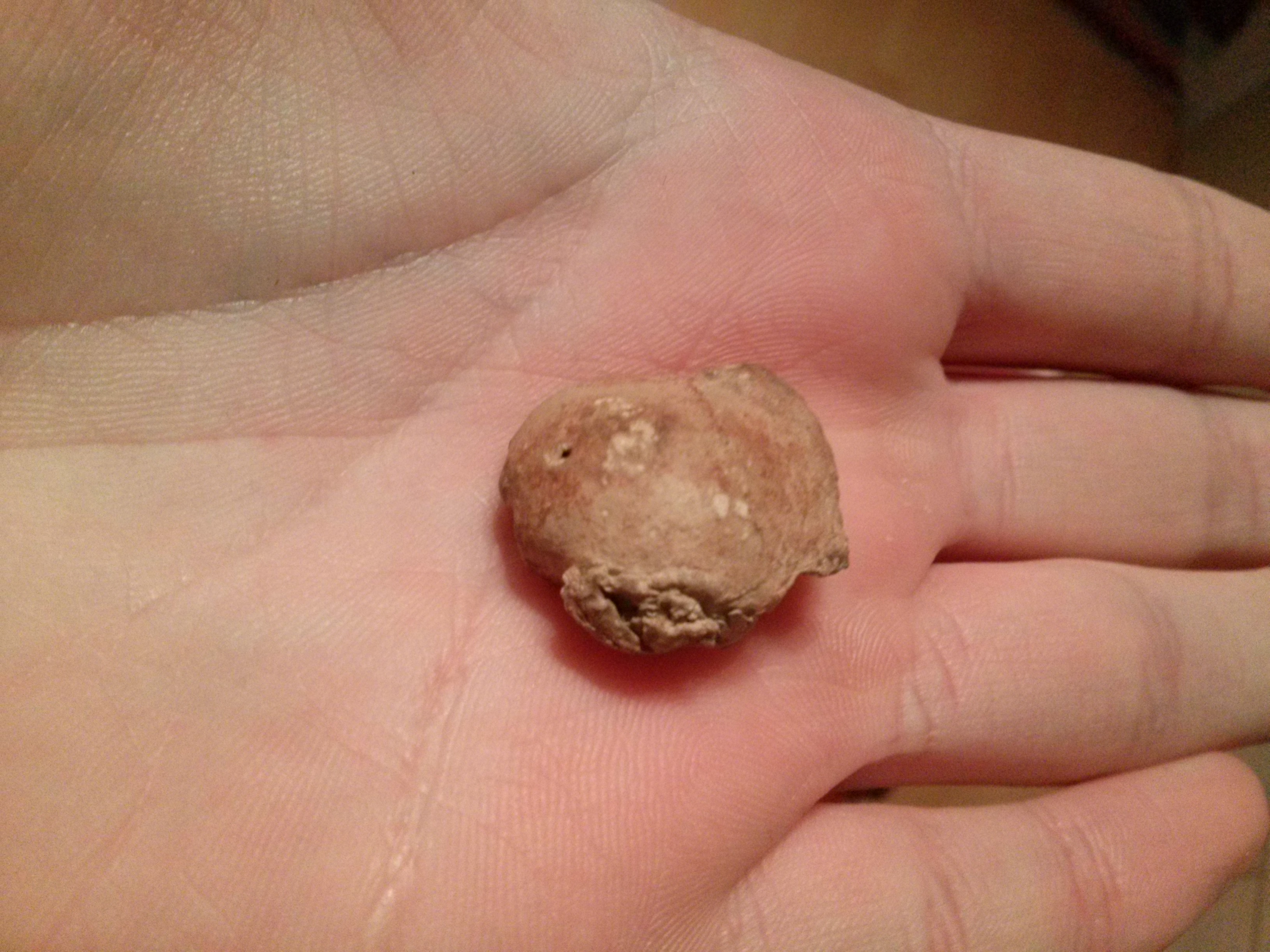 Wenn es aus dem gleichen Material ist, würde ich sagen, es ist eine Musketenkugel ... nur eben eine, die irgendwas getroffen hat :D :D :D