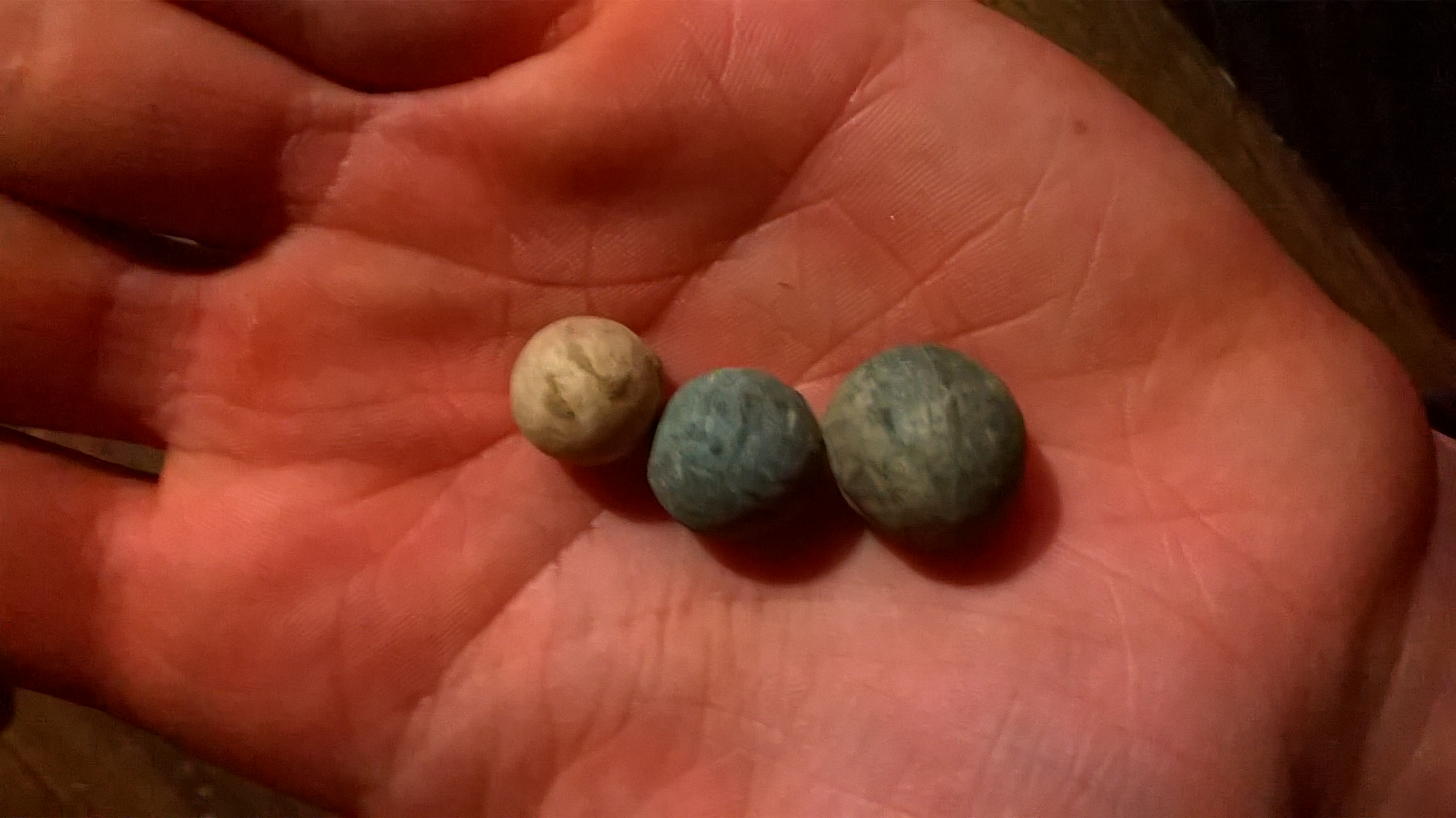 Bei einem Durchmesser von 8-10mm sind es wohl eher Pistolenkugeln...die andere verformte ist demnach eine normale Musketenkugel, wobei es hier viele verschiedene Kaliber gab: