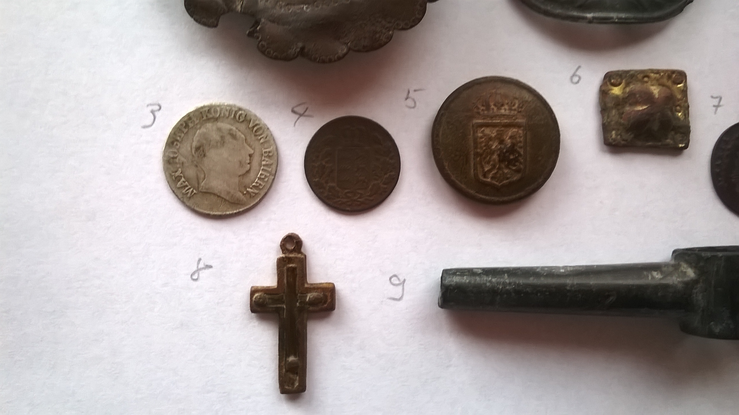 Da ich jetzt schon länger nix mehr gepostet hatte dachte ich mir ich zeig mal ein paar interessantere Funde von letzter Zeit.Sind also noch Funde von 2015 dabei aber stammen alle bis auf den Wasserhahn(9) vom gleichen Acker ;)
