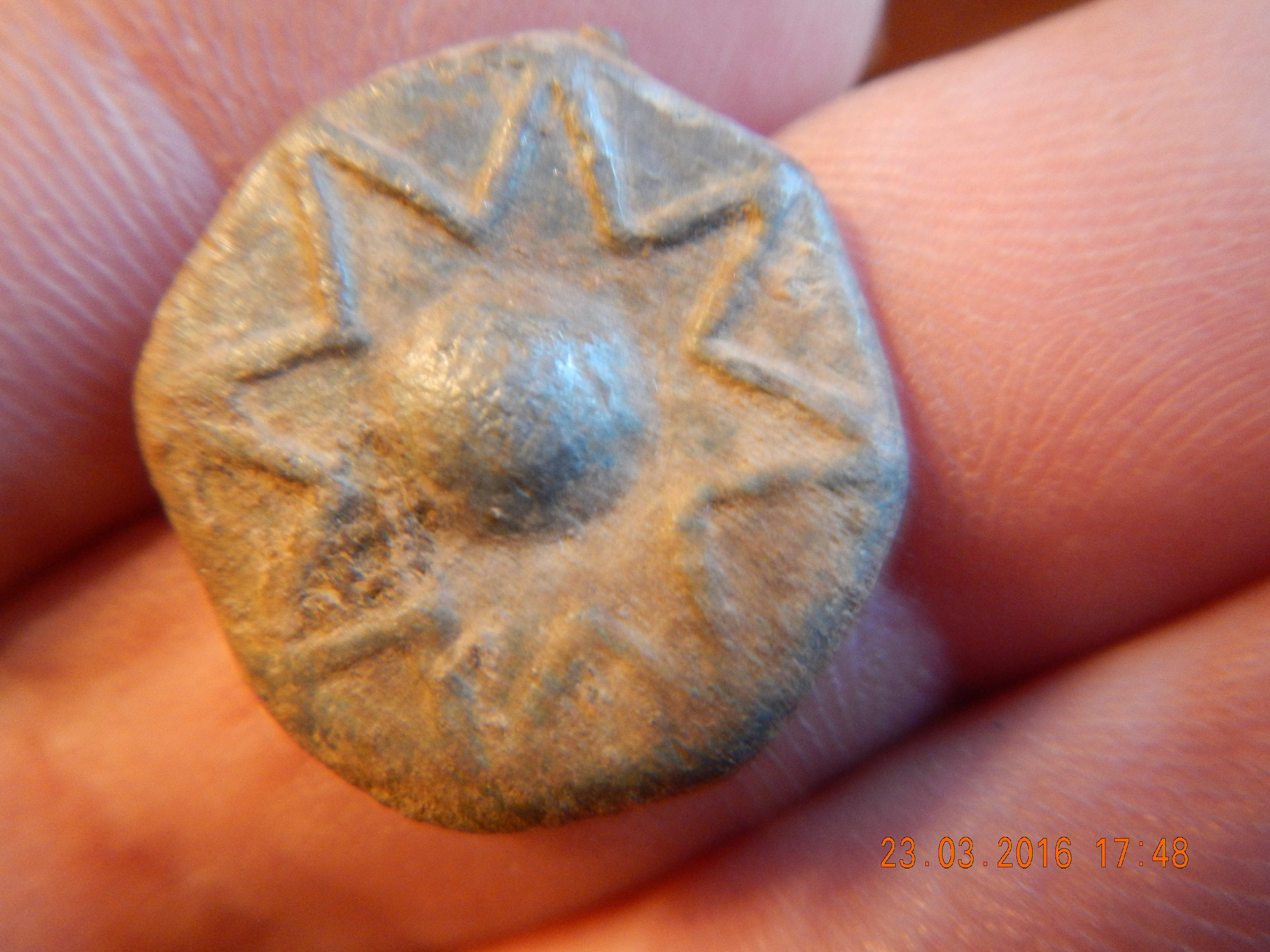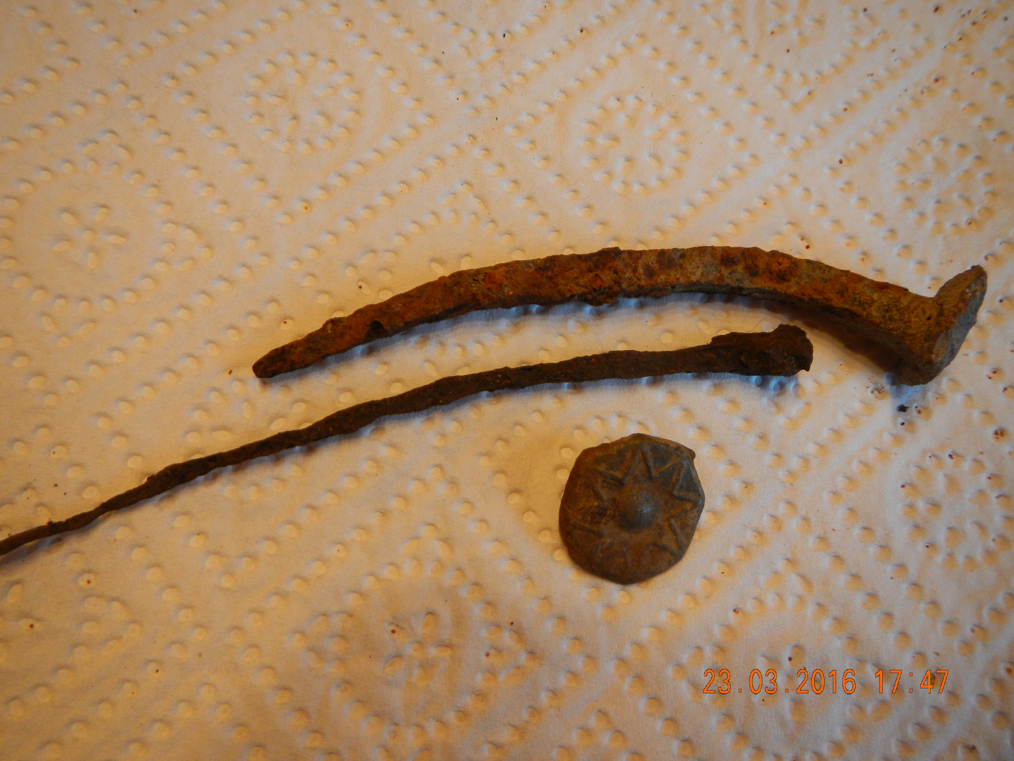 dann auf rückweg--gutshauspark,eigentlich nur ein paar märzbecher ausbuddeln,dabei nägel und den knopf gefunden(ziehmlich schwer 6gramm)