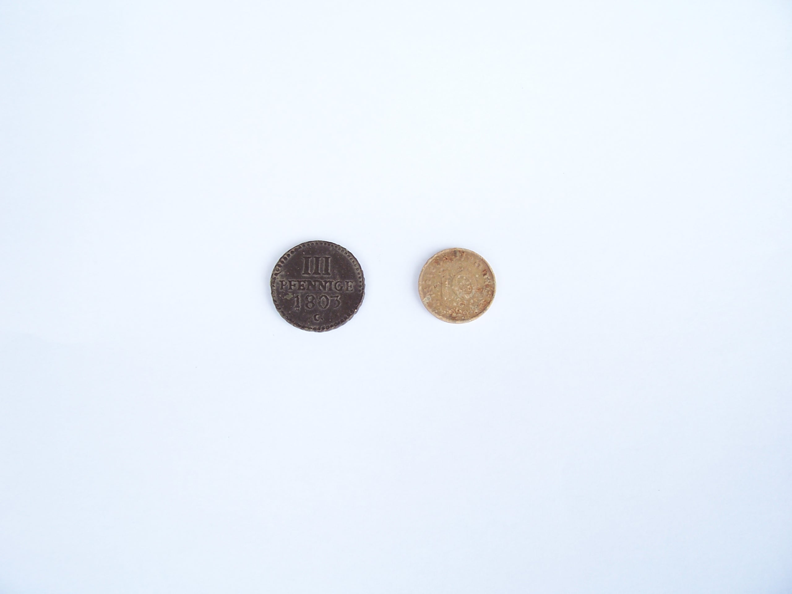 Schon erstaunlich, wie der Erhaltungszustand von Münzen aus verschiedenen Böden variiert. Die 3 Pfenning und der "Zinker" sind vom Lehmacker und nur leicht abgebürstet. :D