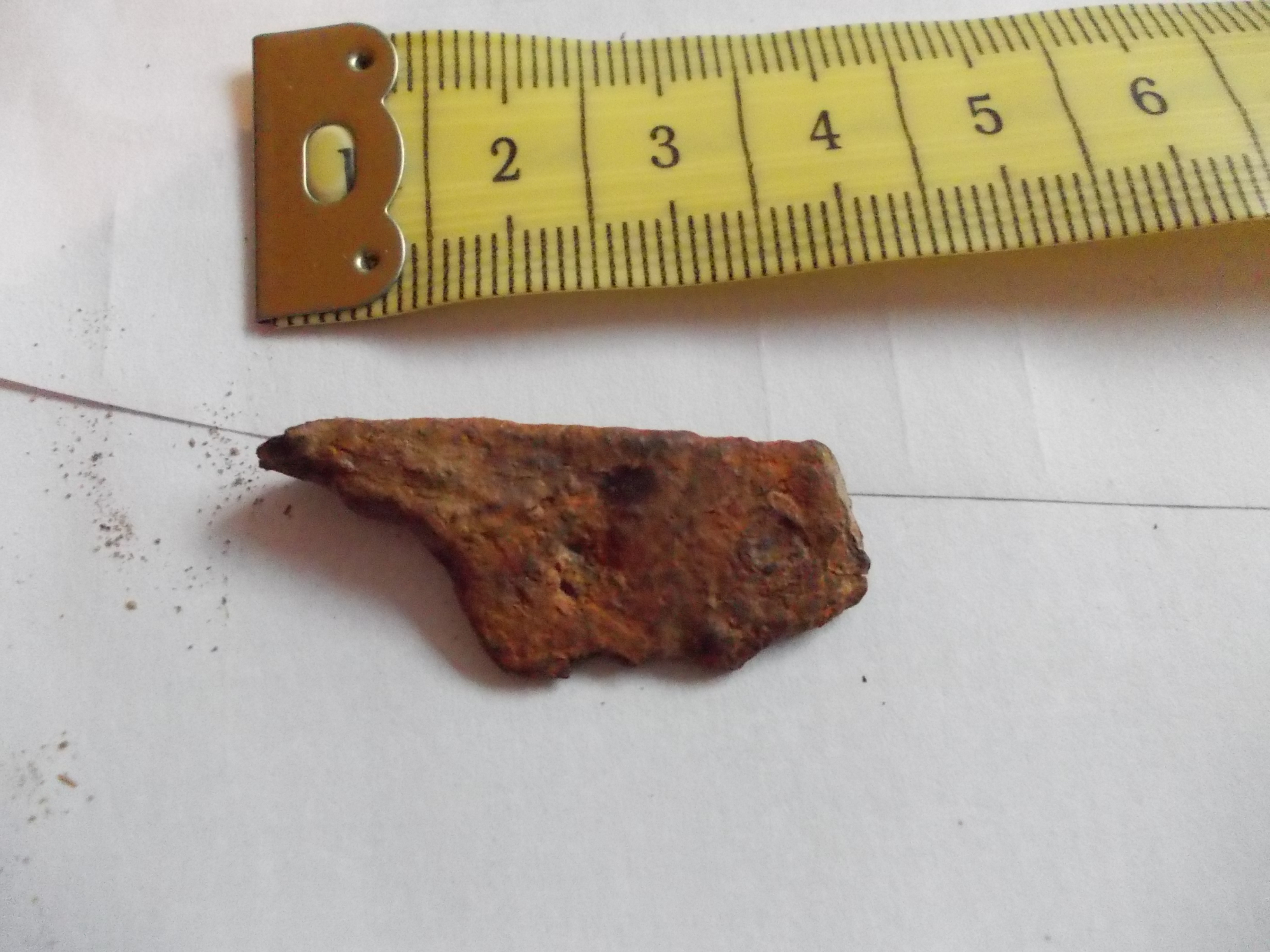 Könnte mir Vorstellen, dass es sich ggf. um einen Teil einer kleinen Klinge handelt (oder aber schrott ist)