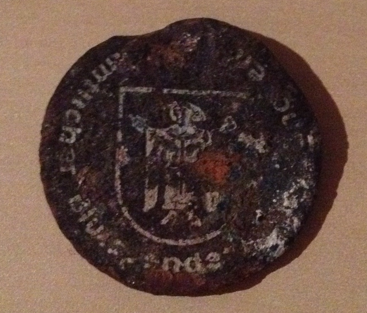Auf der Vorderseite meine ich das Münchner Kindl zu entdecken. und den Schriftzug Blutspende? Die Rückseite ist leider sehr schlecht erhalten.