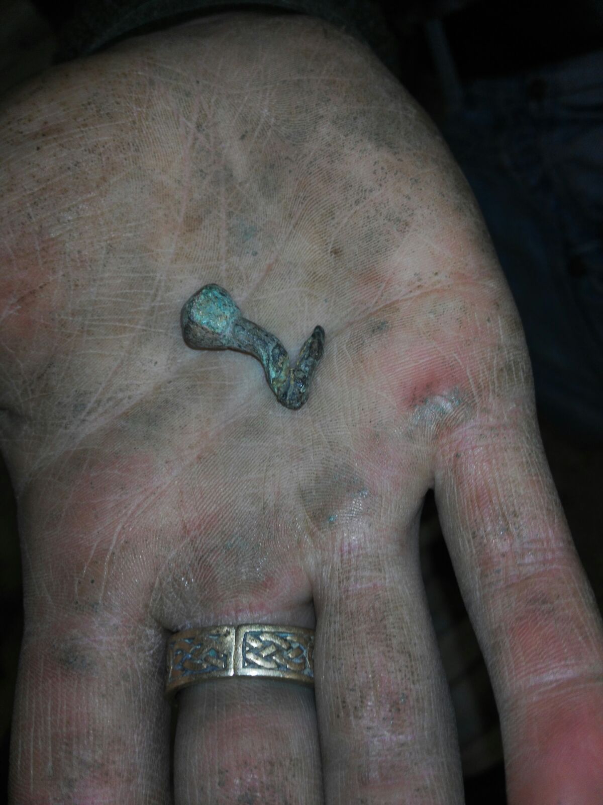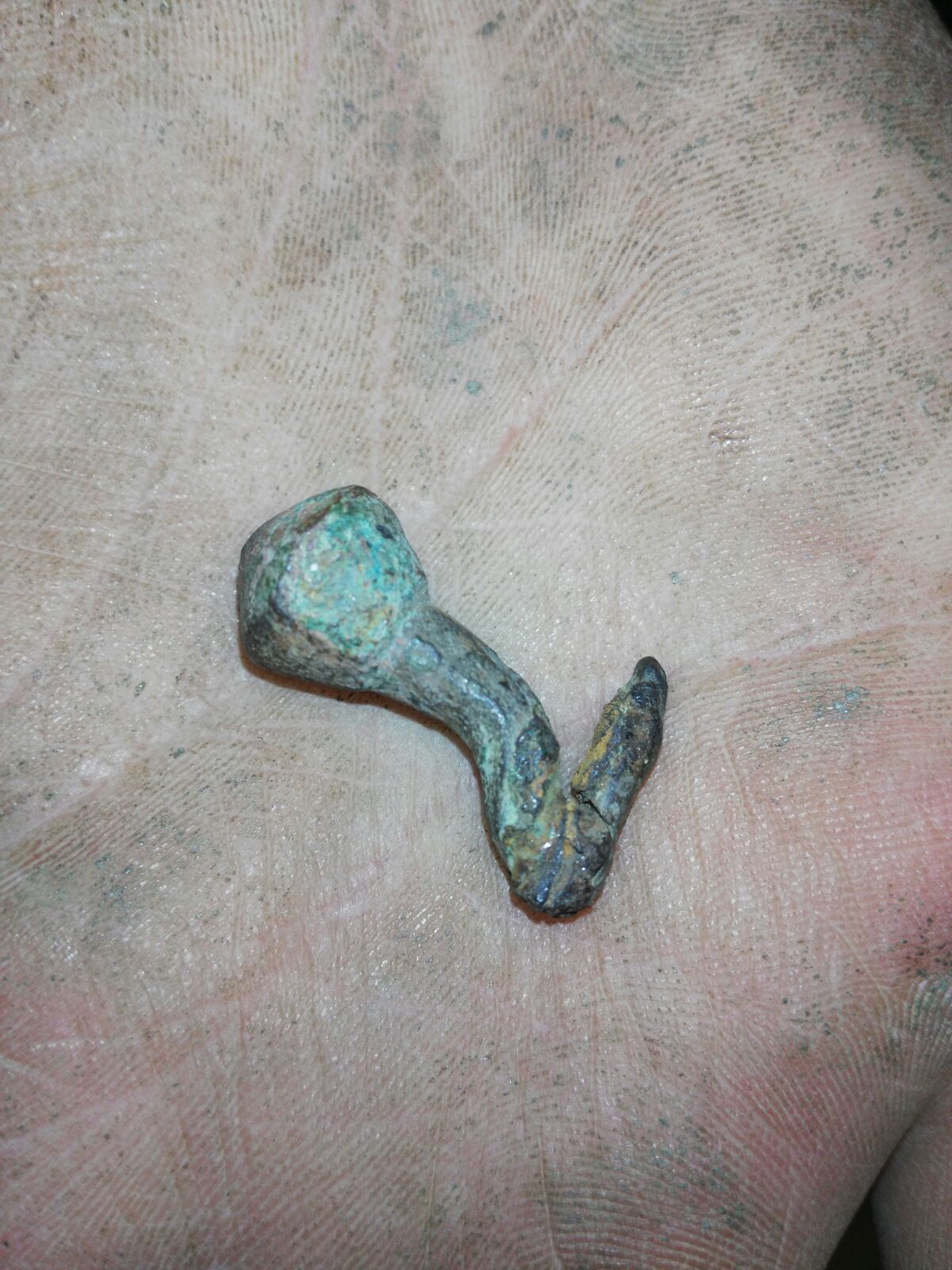 Wir waren an einer Burg in Frankreich sondeln, haben dabei dieses Fundobjekt gefunden. Wir tippen auf einen Ziernagel aus dem Mittelalter. Wenn ja was könnte der mal geschmückt haben?. Das Material ist denke ich Bronze. Kann dieses Objekt jemand bestimmen ?
