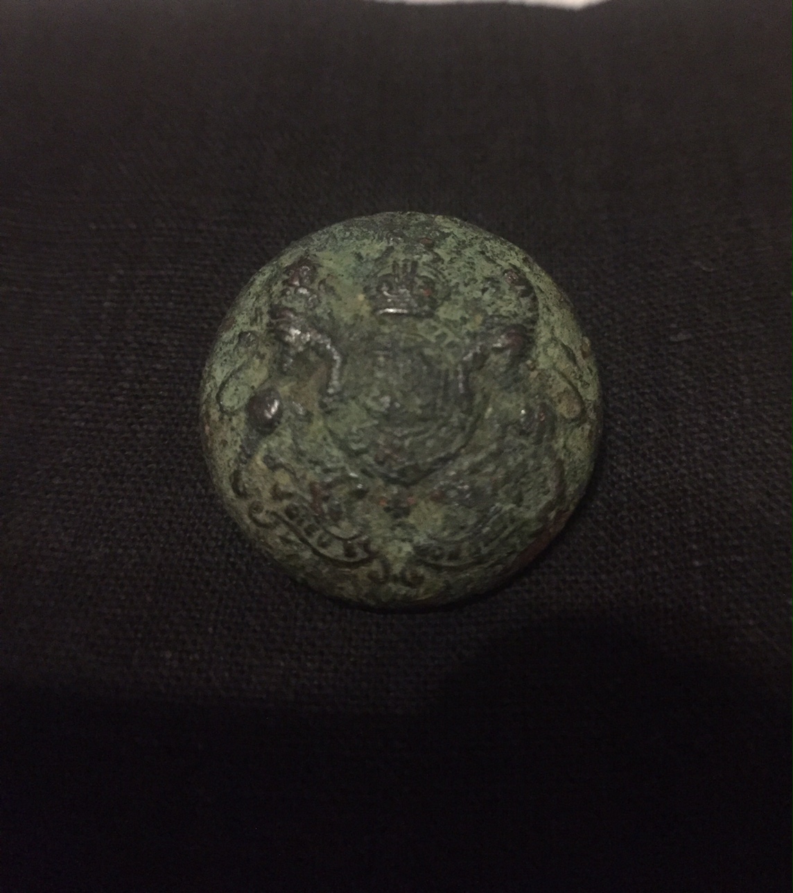 Zu Teil 2: Ein Knopf mit Wappen. Das Wappen habe ich auf einem anderen Knopf (siehe Teil3) schonmal gesehen. Kann da jemand etwas zum möglichen Alter des Knopfes beitragen?