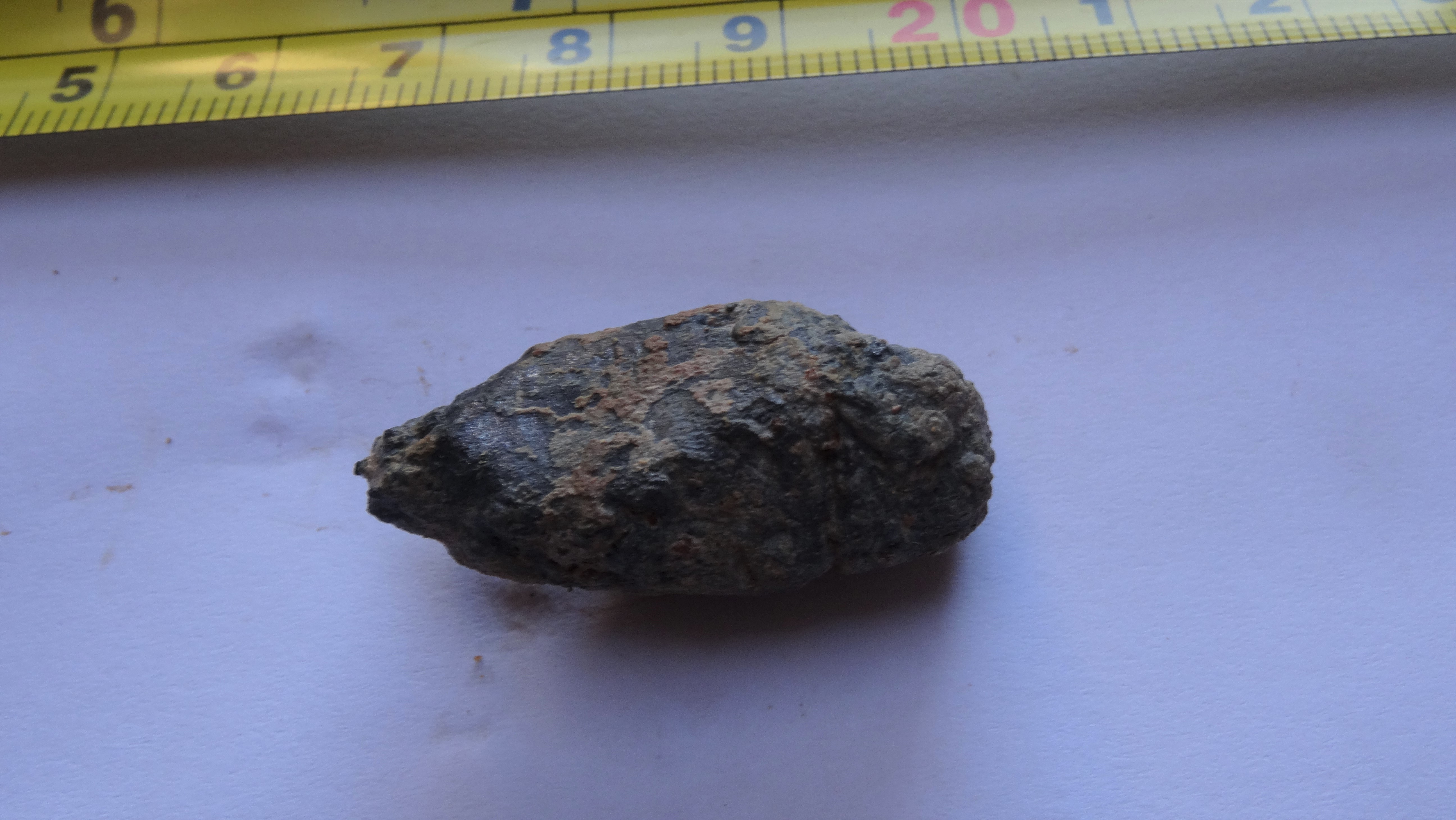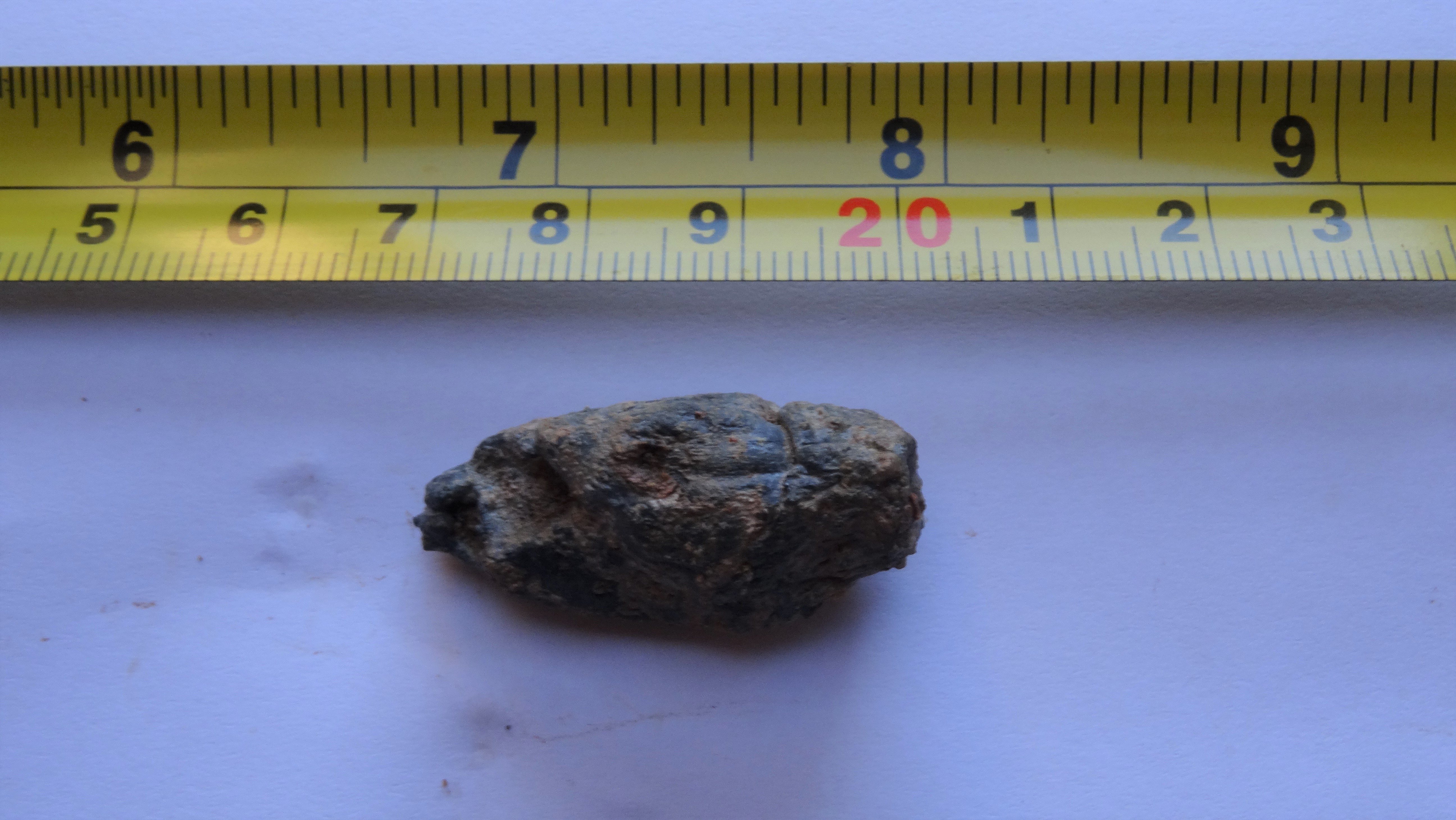 kurioser Fund, hab erst einen Knochen ausgegraben, darin eingeschlossen steckte dies...ist aus Blei ca. 40-50gr (genauer kann ich es derzeit nicht messen da natürlich die Batterie der feinen Waage leer ist :D ) sieht interessant aus, ein normales Projektil kann das ja kaum sein, hab gestern lange gesucht...kann das sowas wie Schleuderblei sein?