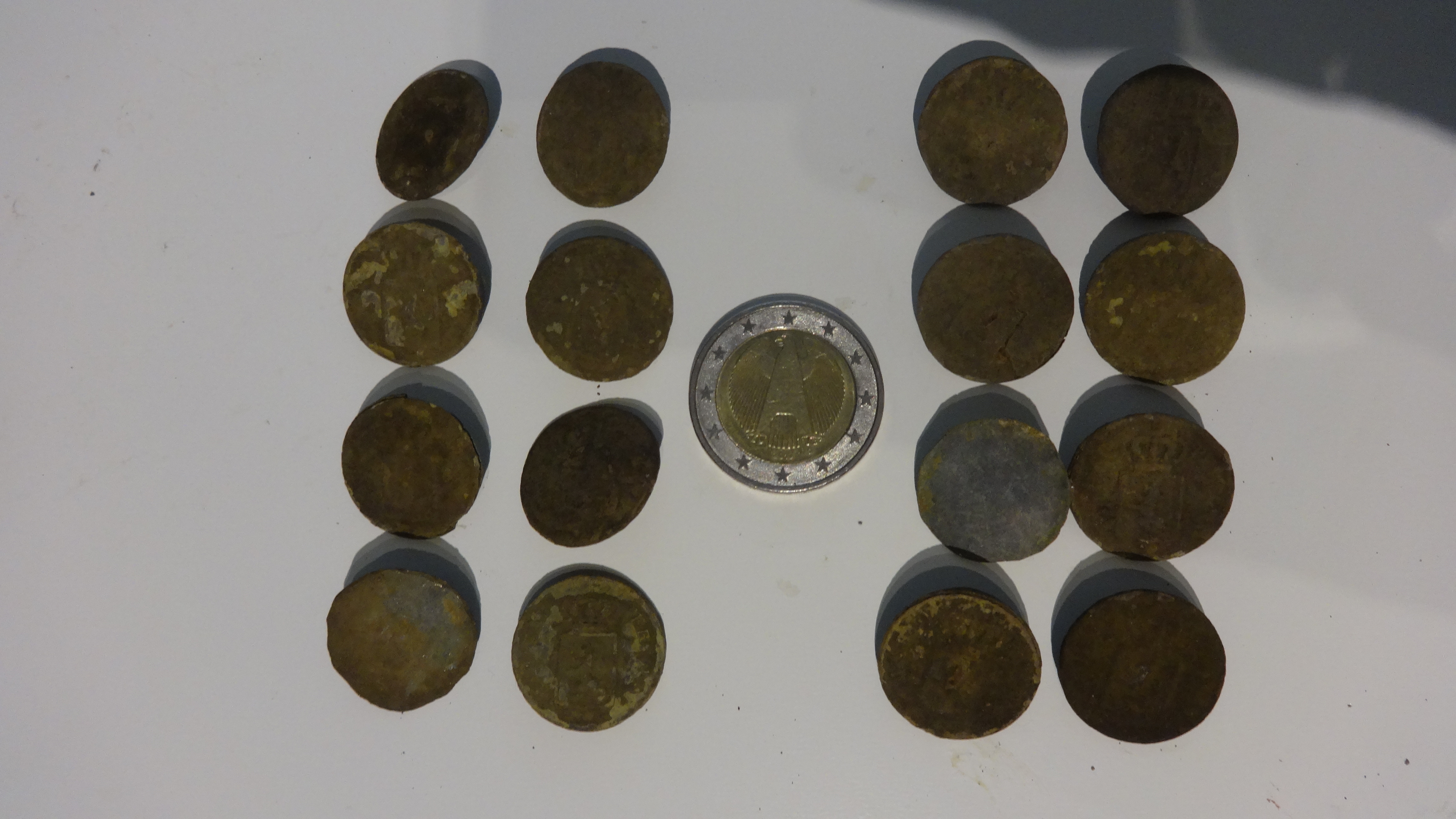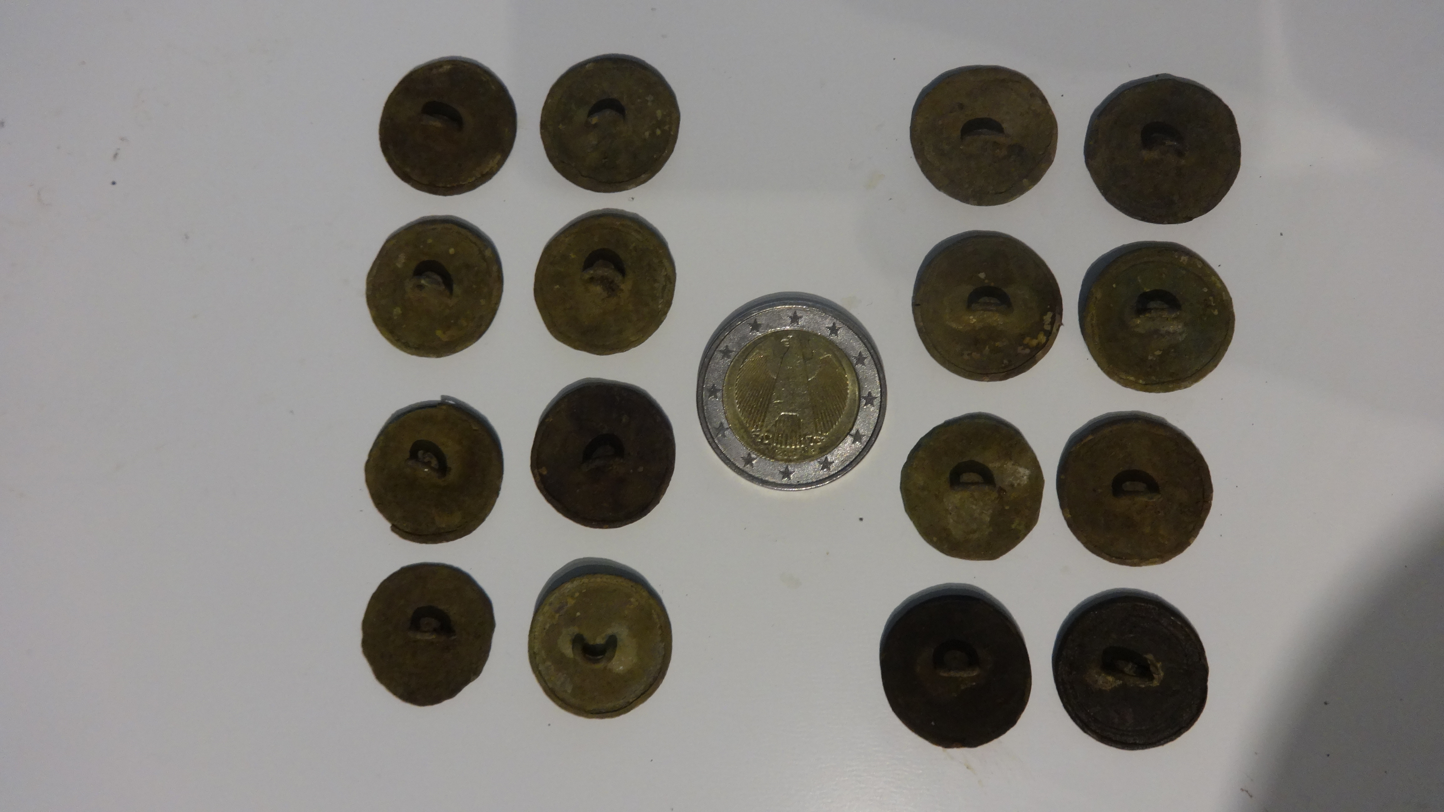 Hatte heute aber Glück und stolze 16 Knöpfe auf kleinstem Raum zu Tage gebracht! Schnalle und Pfennig waren auch noch dabei.