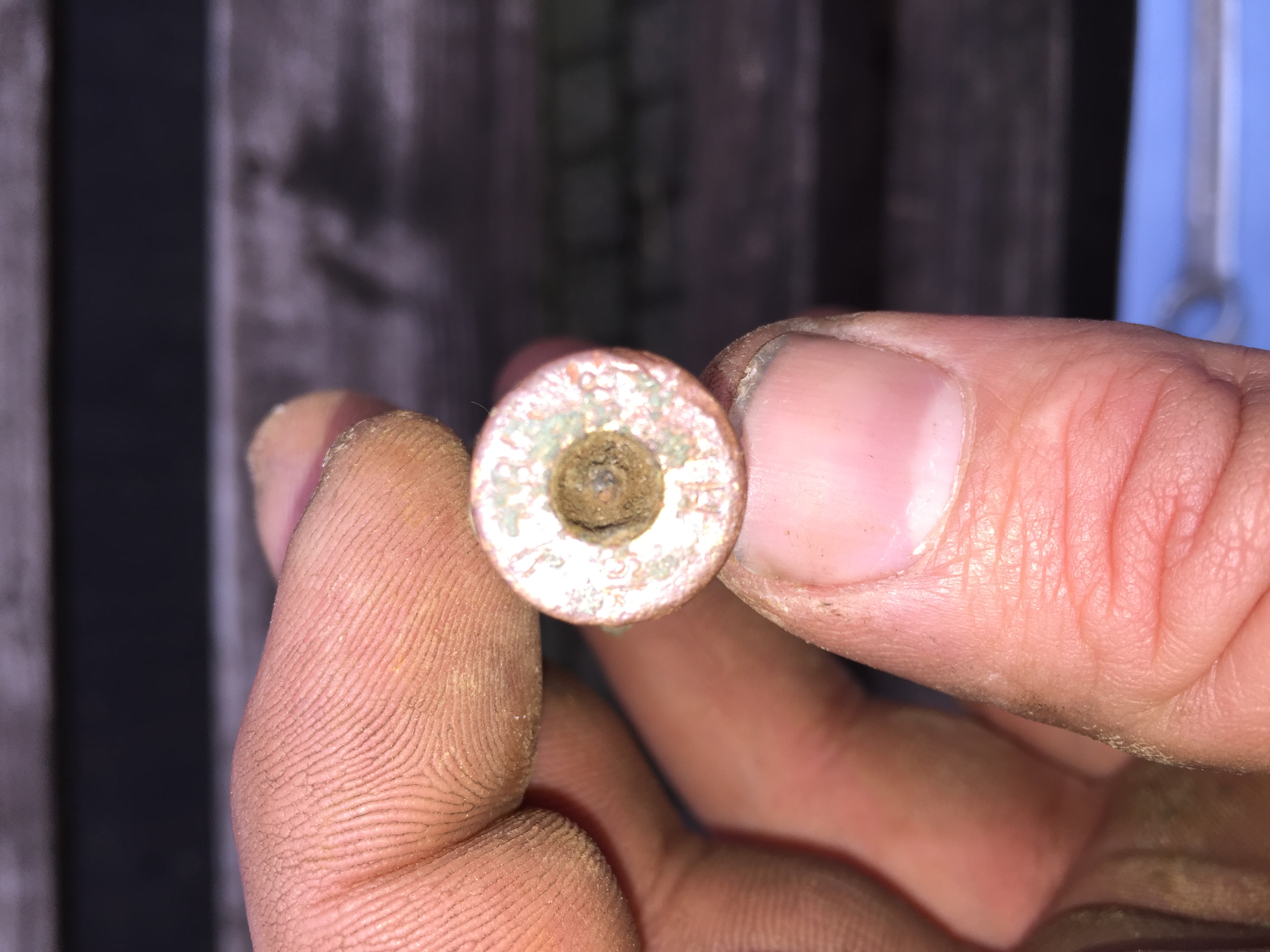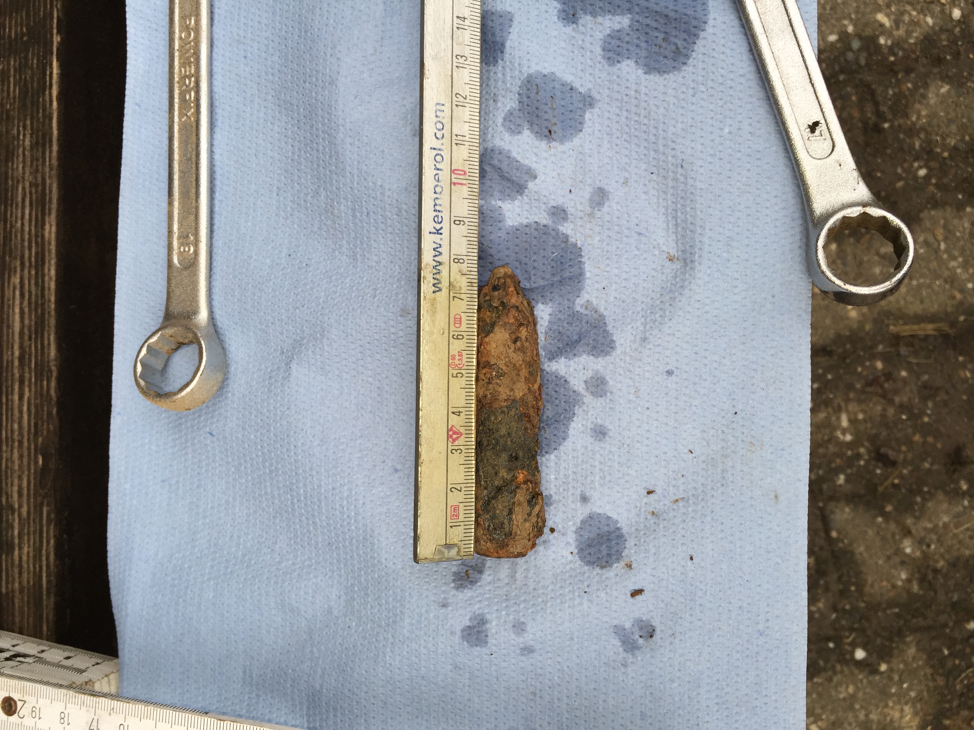 Ein Fundstück sieht aus wie ein Projektil von einer Flak. Der "Boden" ist auf jeden Fall aus einem anderen Material als der Korpus. Ich vermute Blei.